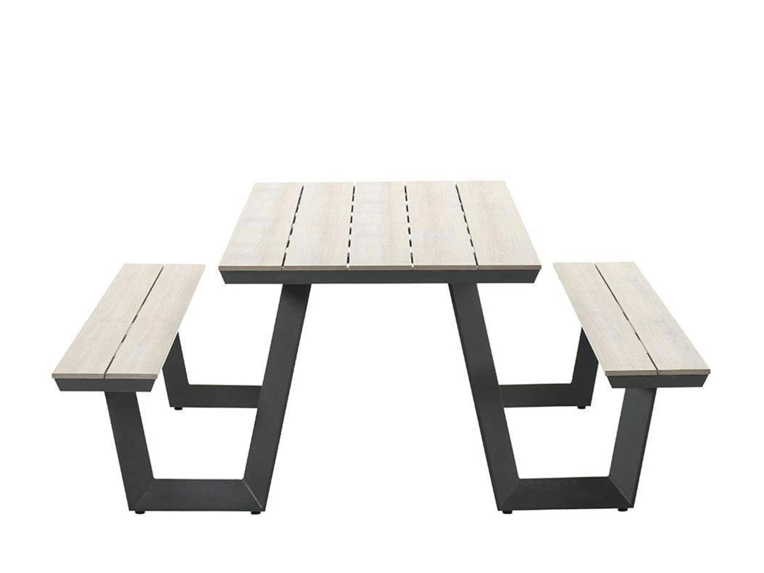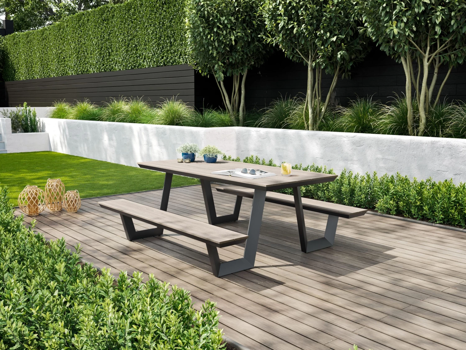 The traditional picnic table meets modern furniture design with this practical outdoor setting – introducing the Alpine Picnic Table.