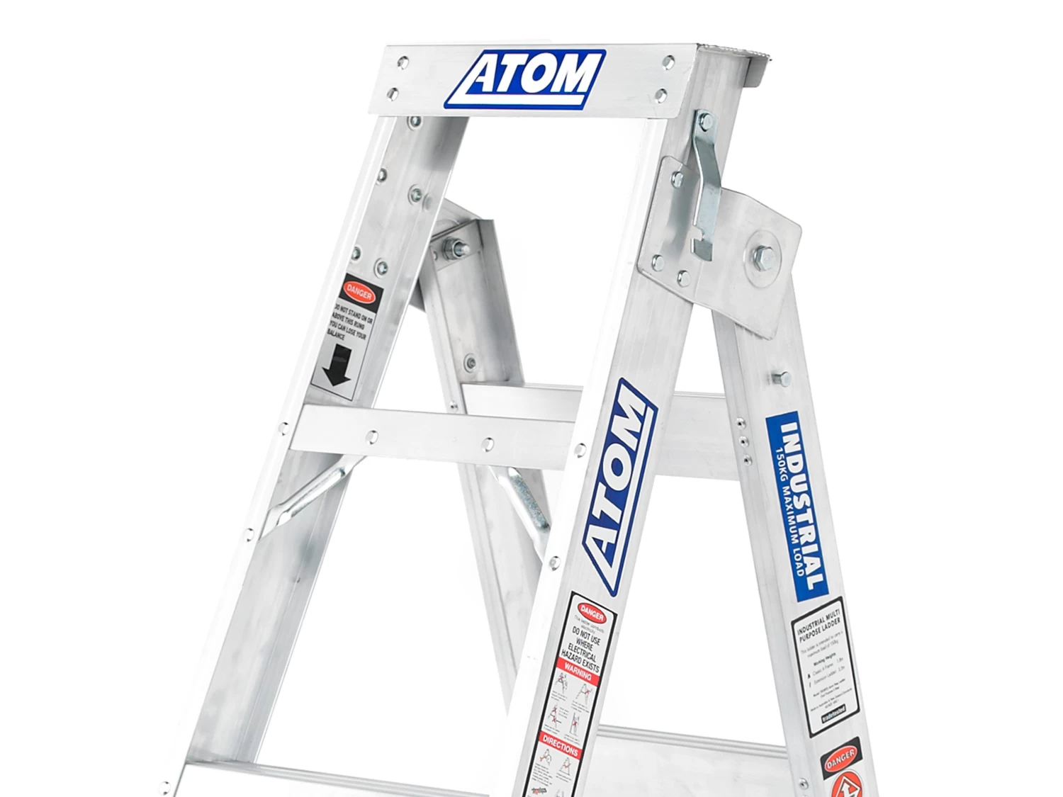 Safe, easy to use and backed by a 1 Year Warranty, this Atom step ladder is going to make light work of hard to reach chores. Don’t mess around with imitations – Get up an Atom today!