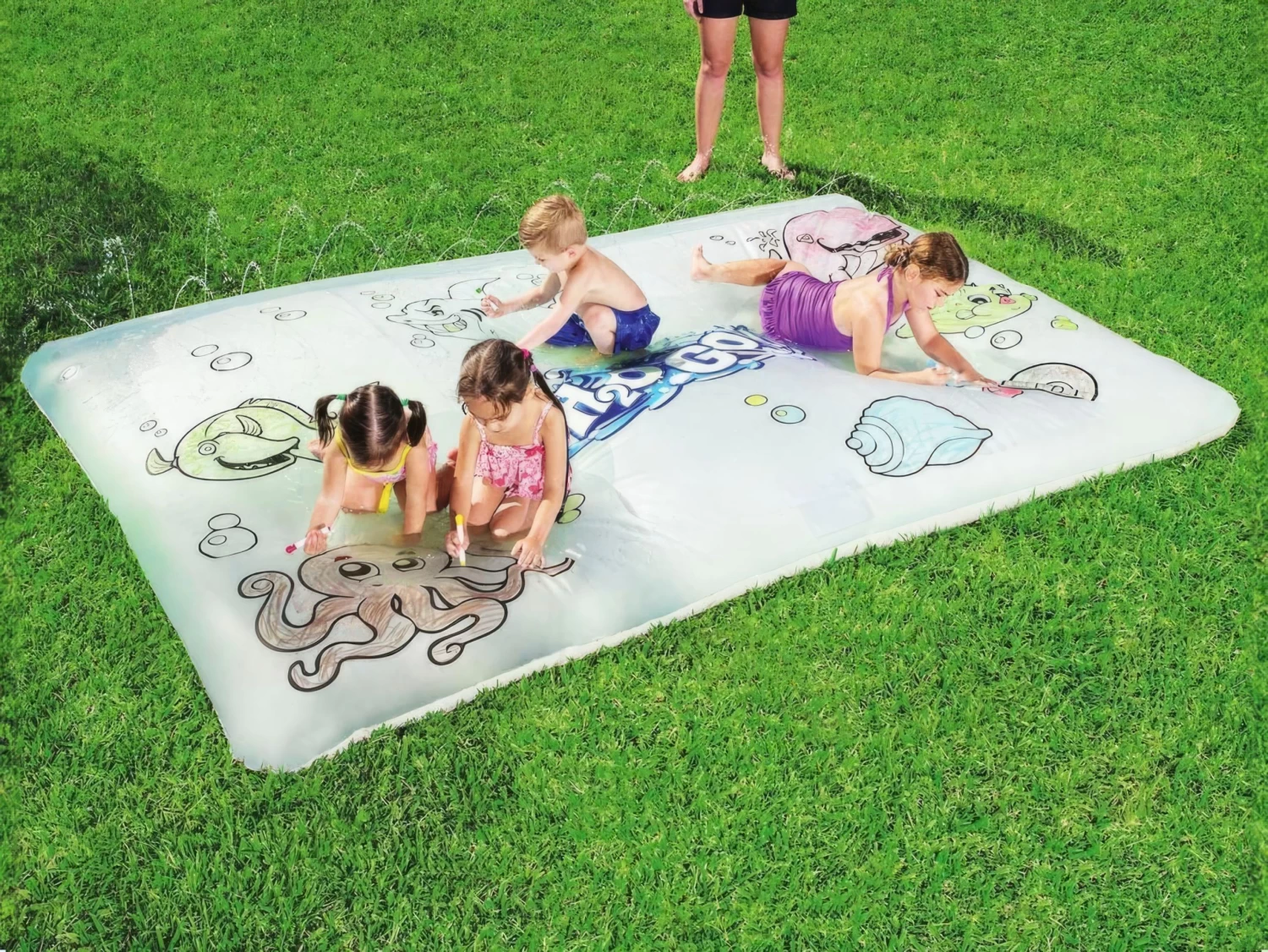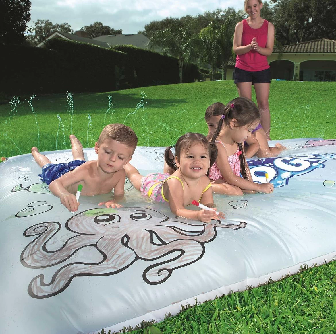 • Includes water mat and 5 – erasable crayons for outdoor play, a birthday party or family gathering