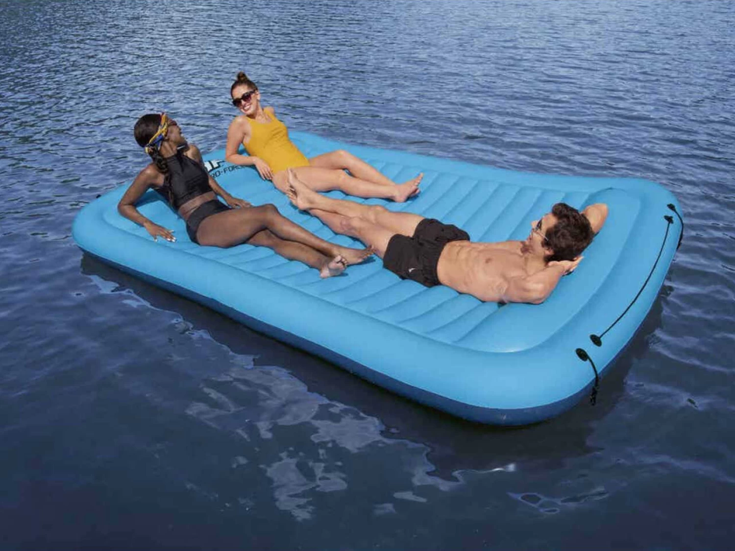 Splash into summer with friends and family on this giant lilo style Sun Soaker Inflatable – you can even link several together to form one massive floating platform!