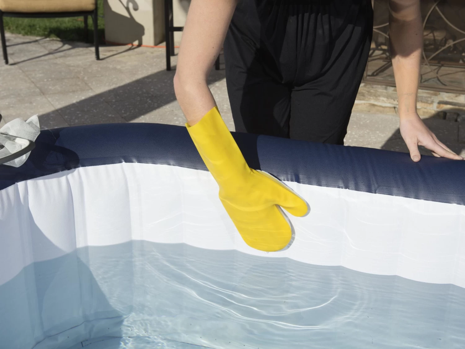The brush also has a bumper and nylon bristles to make it safe for cleaning your spa surface. It also comes with the option to be handheld or attached to a standard telescopic pole. Besides, the scrubbing mitt is a latex glove bonded with a scrubber pad which allows you to scrub along the spa waterline while keeping harsh chemicals off of your skin.