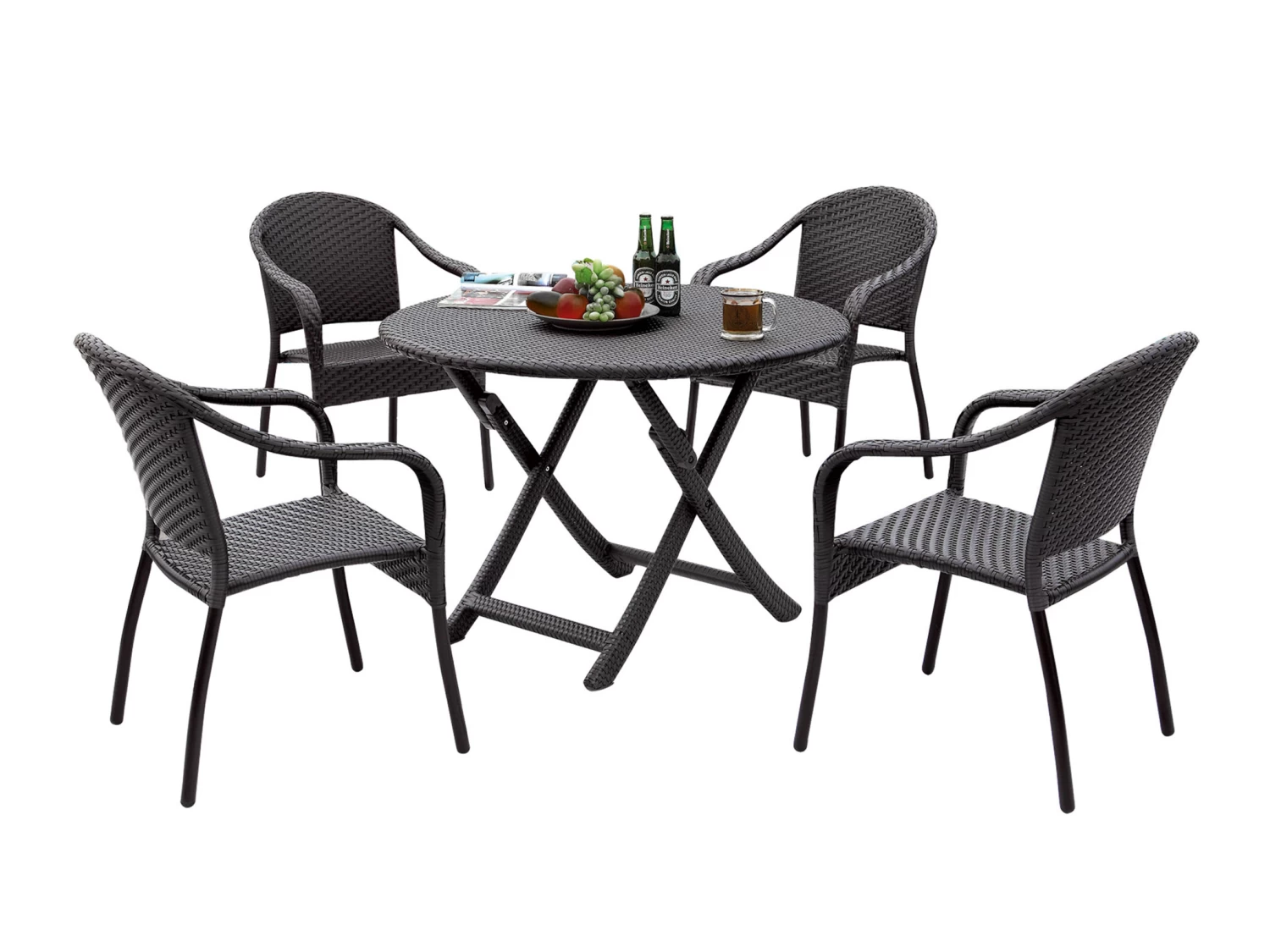 The 100% high-density polyethylene (HDPE) resin has many attributes: it’s non-toxic and safe for the environment. It’s also antimicrobial, a quality that prohibits the growth of fungus and mildew. The wicker won’t splinter or rot in extreme temperatures. The powder coated aluminium frame is tough but lightweight.
