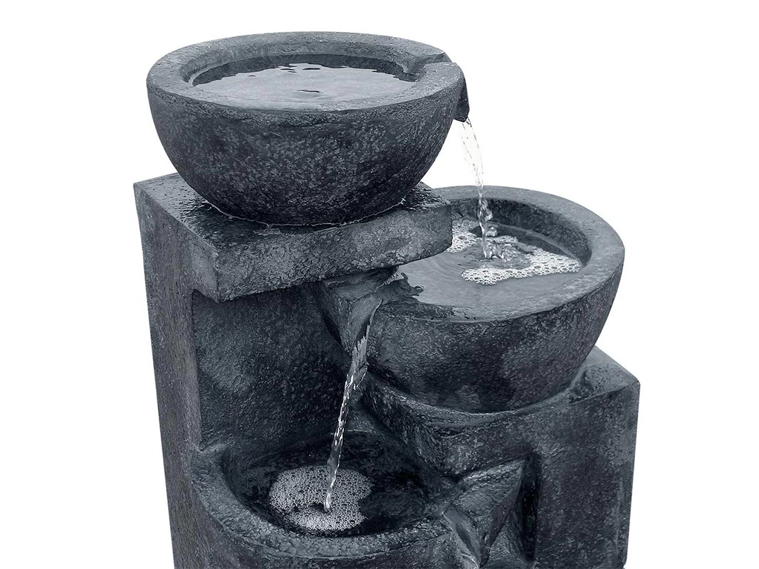 Powered by a solar panel and pump, this fountain is totally self-contained and requires no wiring, digging or additional reservoir. Water is pumped up to the top pot and cascades down through the water feature before collecting at the base, ready to complete the cycle again.