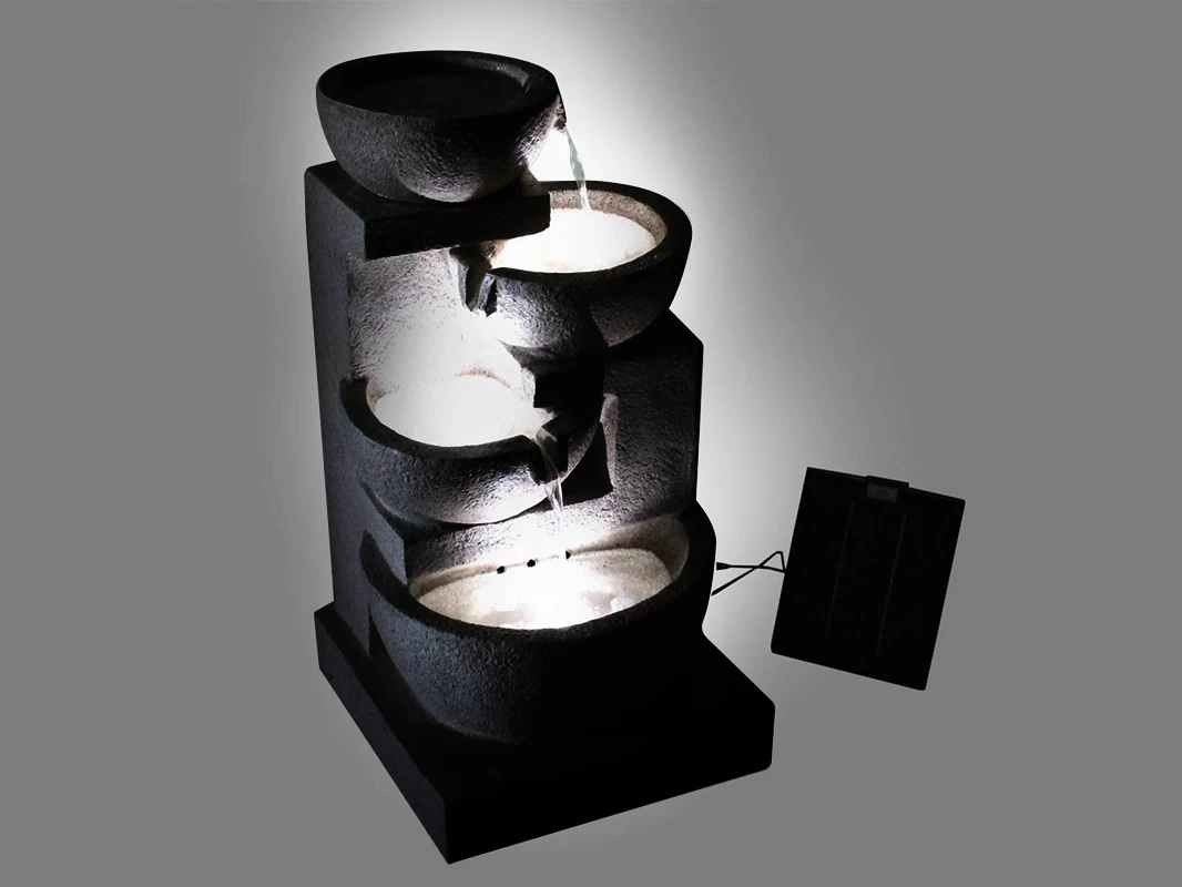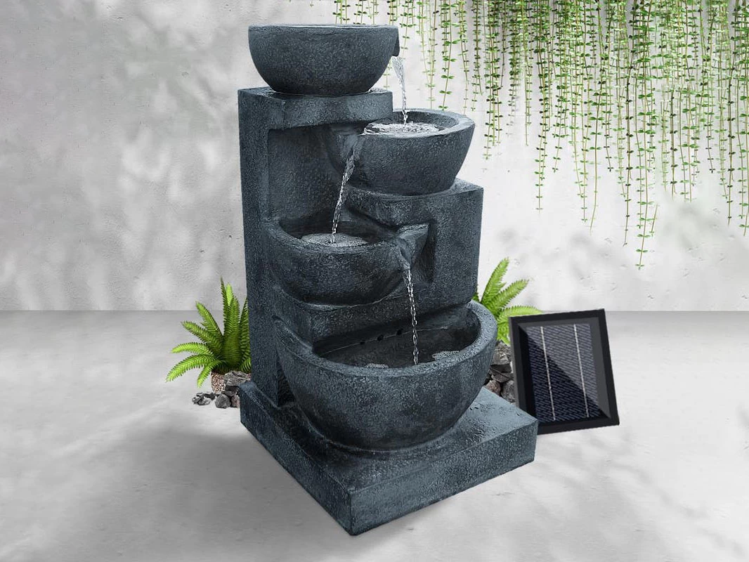 This 4 tier fountain features a top bowl that fills slowly before gently overflowing into each of the bowls below. Solar powered and completely self contained, this water feature can be set up anywhere in your garden or back yard and is sure to be a topic of conversation.