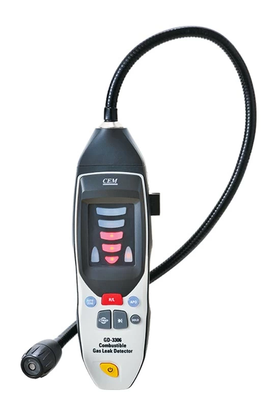 The CEM Gas Leak Detector Pro detects the presence of combustible gas and measures concentrations between 0~10000 parts per million (PPM).
