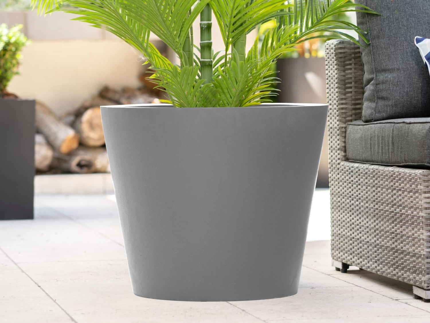 The smooth lines and rounded bell shape of these planters will help you maintain a modern design throughout your space. You can’t go wrong with the sleek grey finish as it blends well with any décor.