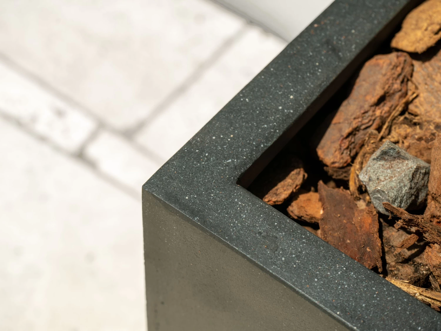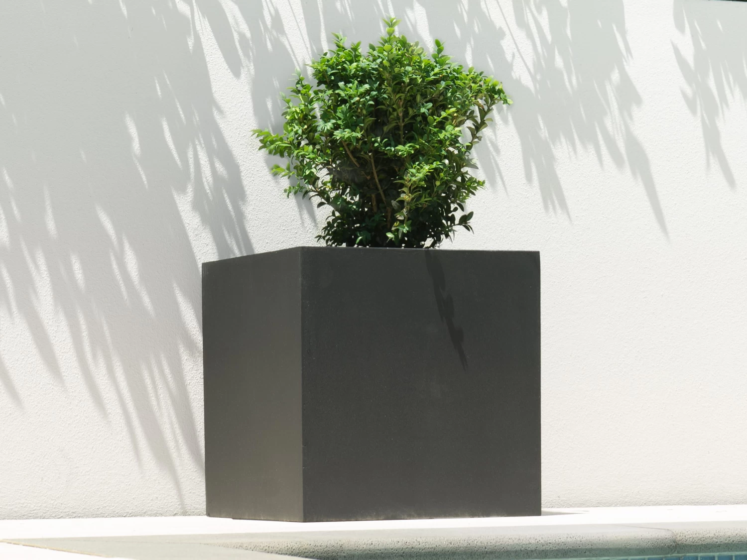 The simple & stylish Cubo 64L Fiberstone Planter is the perfectly understated, cube shaped planter for ferns, flowers, and other indoor or outdoor foliage.