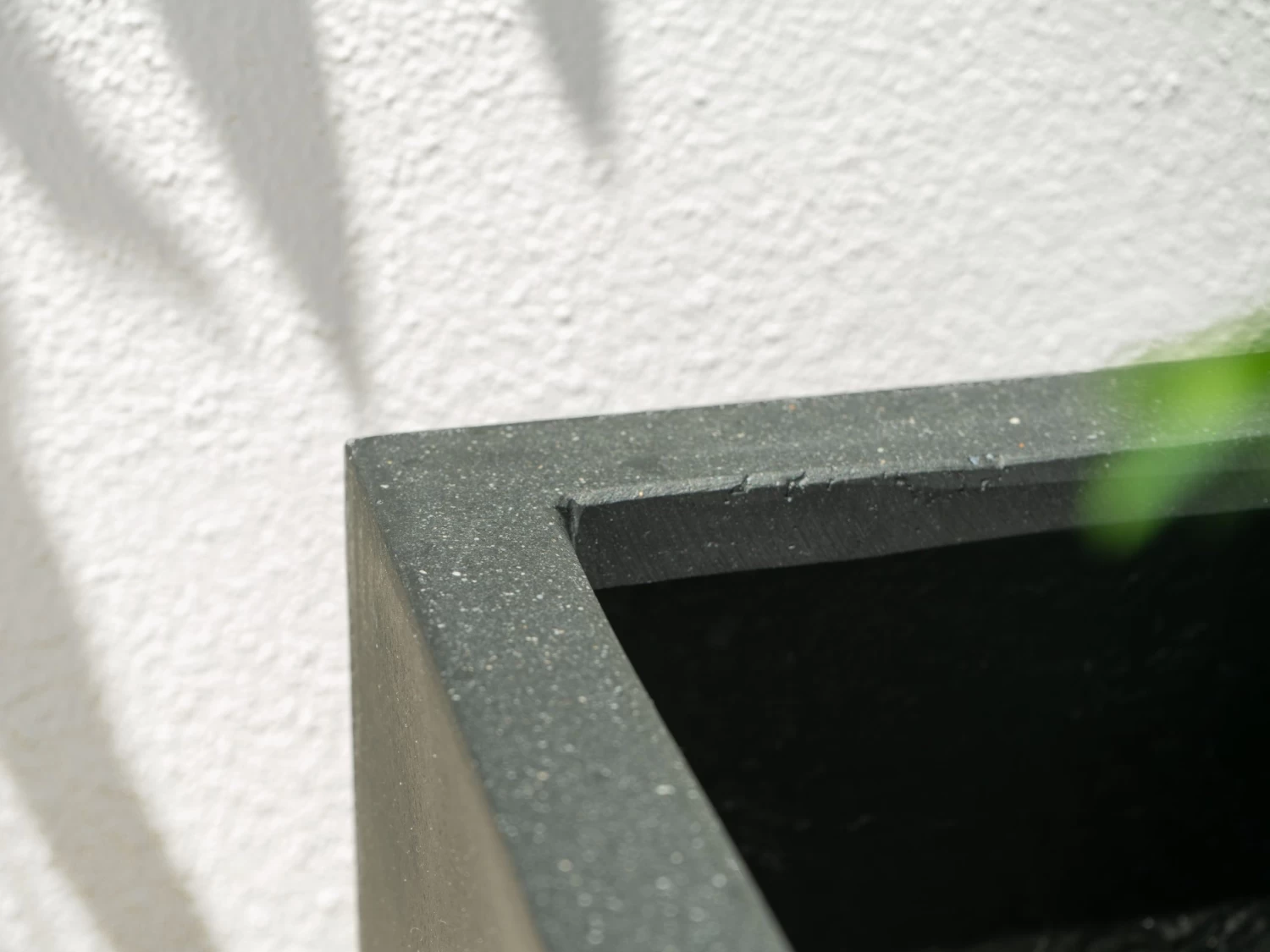 The Cubo cube style planter has a contemporary appearance with a clean-lined square silhouette and a sleek, black, stone-look finish.