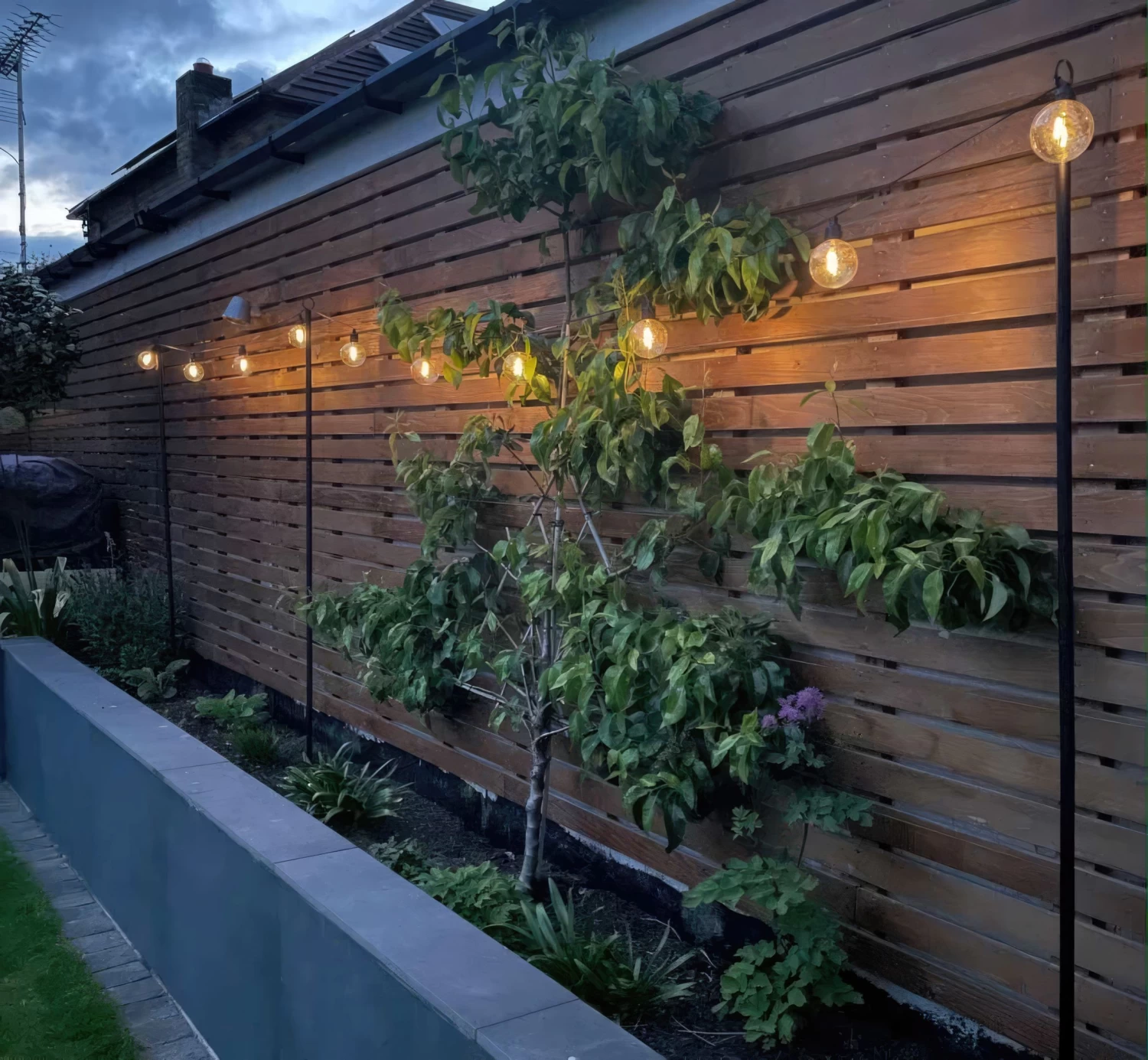 Made of durable powder coated steel, this pole has a staked end so it can be easily driven into the ground. The hook on the top secures your lights and stops them sagging.