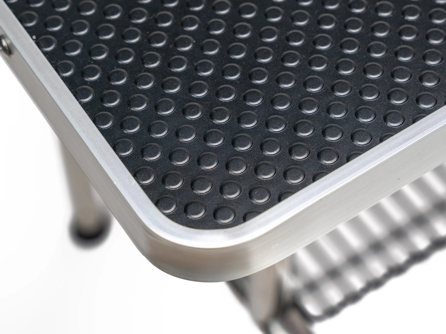 A PU covered table top with anti skid surface means this table is easy to clean and ensures your pet feels comfortable and safe throughout your grooming process. Rubber feet hold this table in place to prevent it moving around under the weight of your pet.