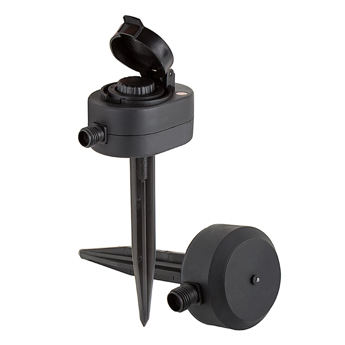 A ground-mounting stake is included.