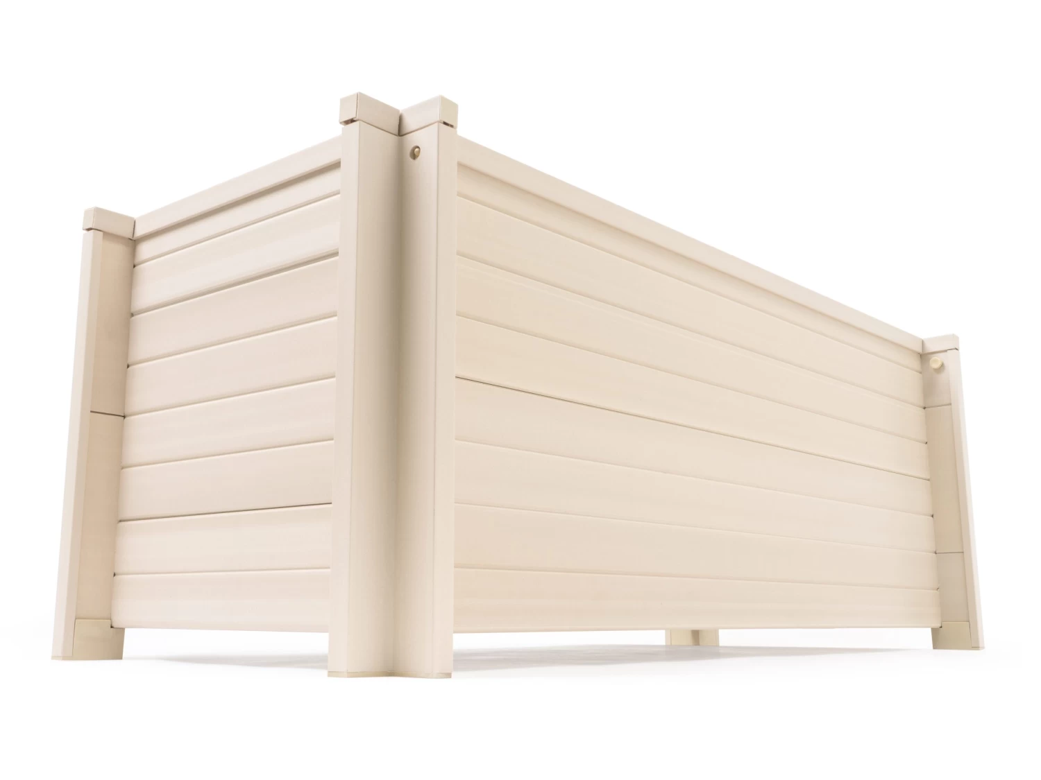 The clever EcoFLex composite material is a mix of recycled polymers and reclaimed poplar, a non-toxic super-strong combination that will last up to 5 times longer than a traditional wood garden planter. EcoFlex won’t splinter or warp and you can even paint it to match your backyard.