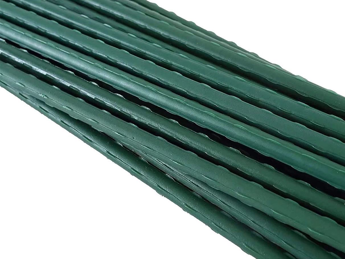 Made with a heavy-duty steel core, these stakes won’t bend or break, even under a heavy load. A thick, hard, PVC coating surrounds the steel core, offering added strength and protection against rust, inclement weather. Pointed tips allow easy insertion into your soil.