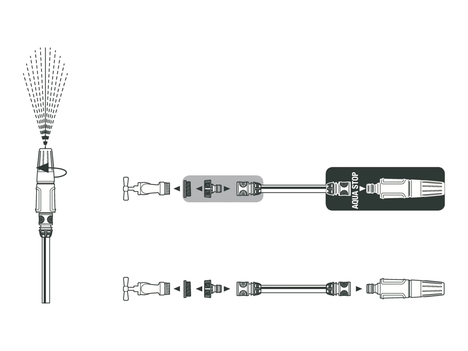 With this Gardena System Basis Set, you have all Original Gardena System Fittings and a Cleaning Nozzle for immediate use of your hose.