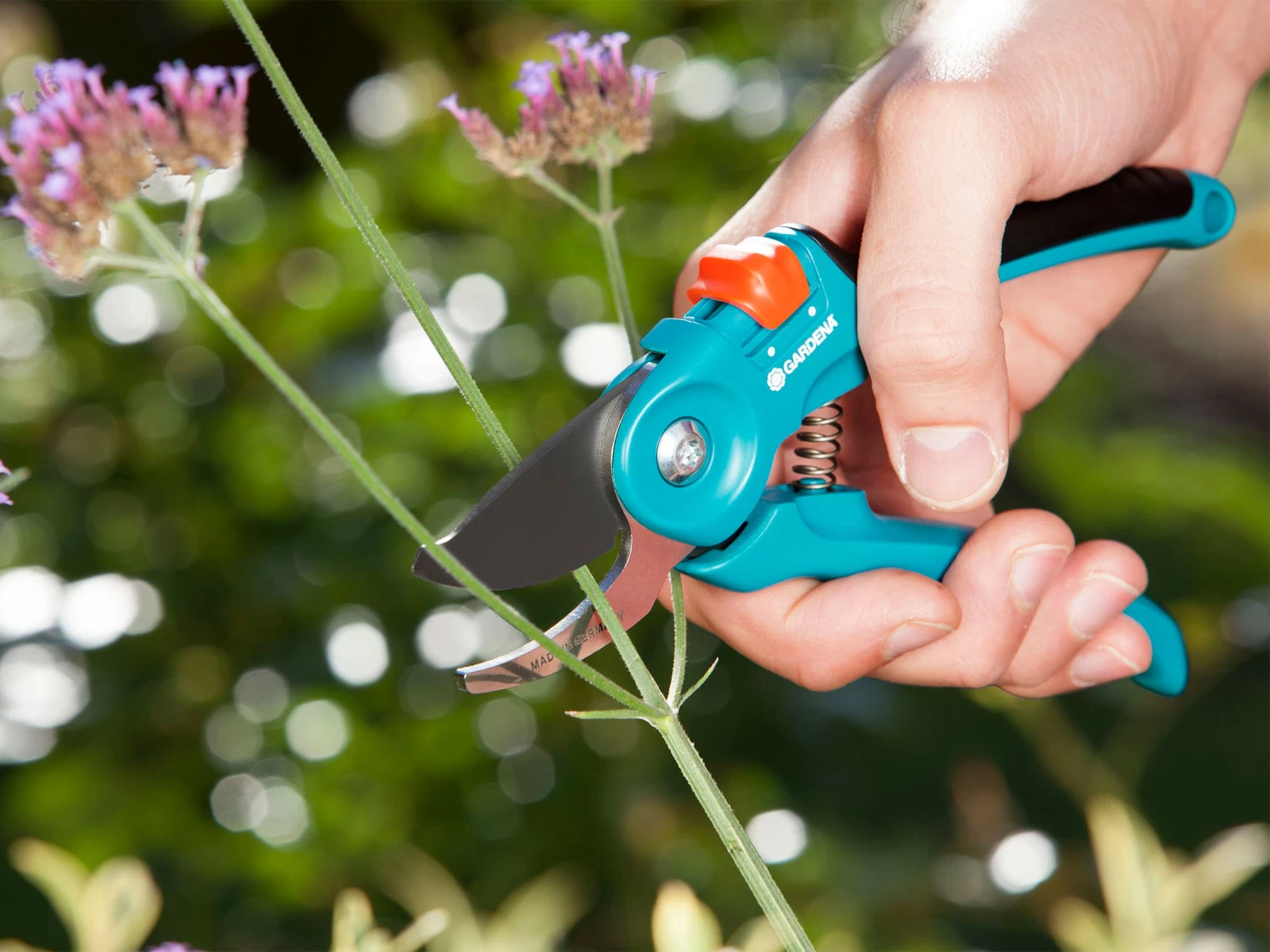 The Gardena Garden Secateurs B/S with their non-stick-coated upper blade and bottom blade made of rust-proof stainless steel are perfect for cutting flowers, young shoots and fresh wood (up to 2cm).