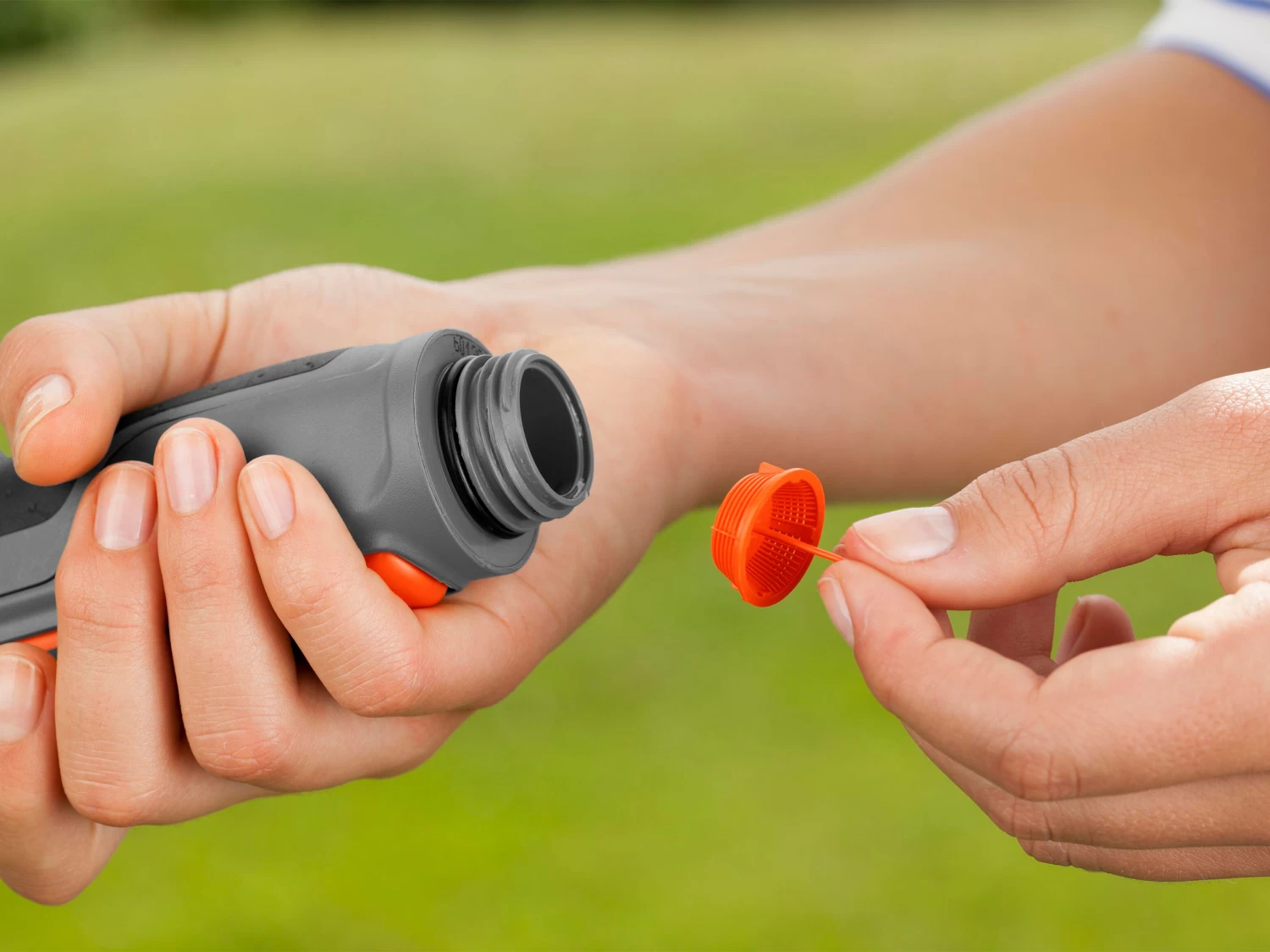 With the Gardena Classic Multi Sprayer you are best-equipped: The sprayer has three different water spray patterns. Soft plastic ring on the head to protect from damage.
