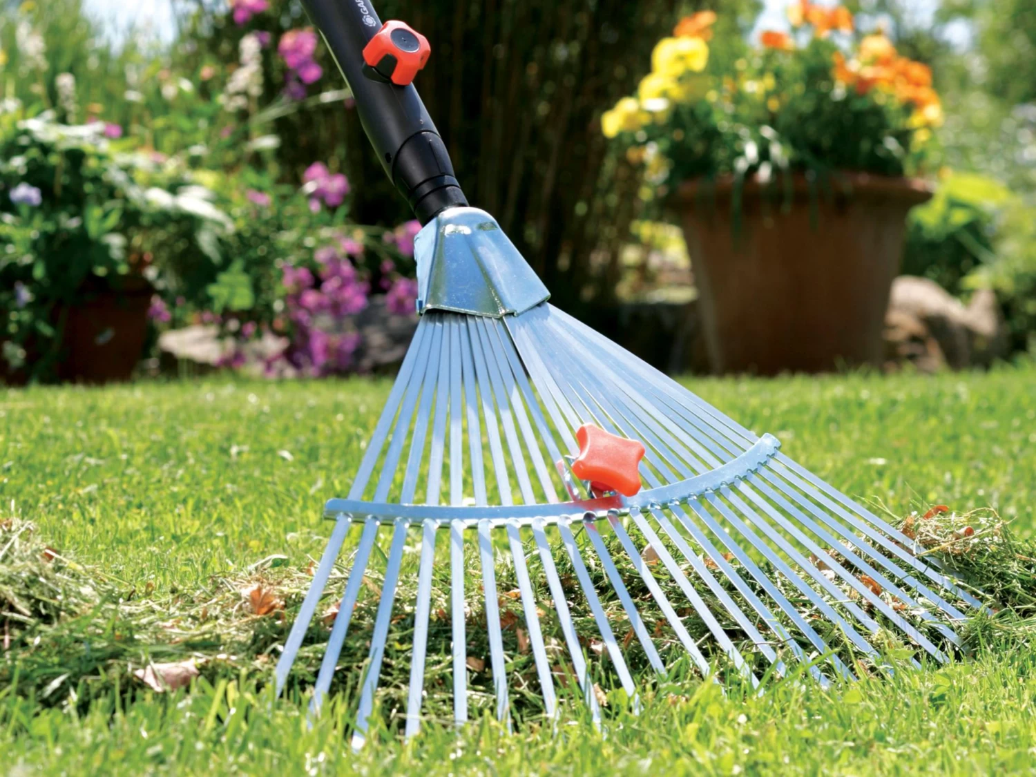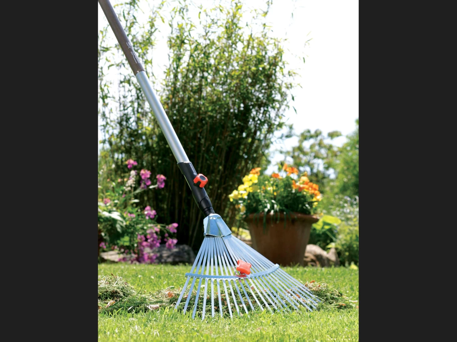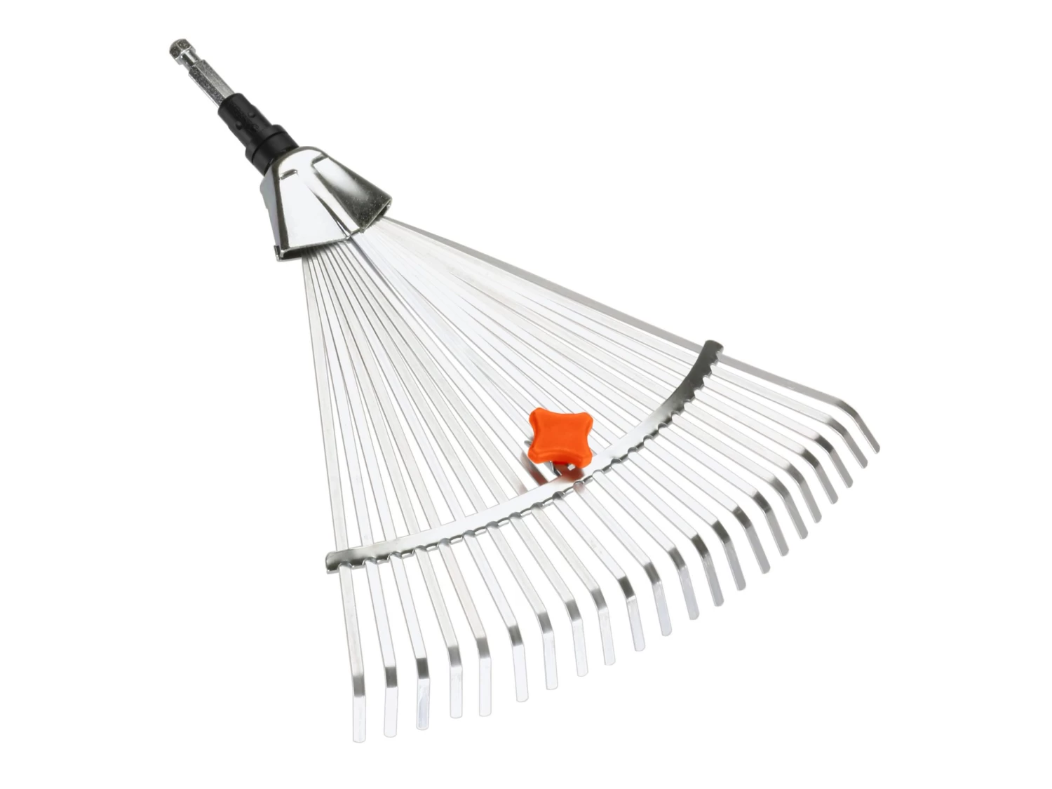 The Gardena combisystem Adjustable Rake is ideally suited for raking leaves, grass clippings and other garden debris.