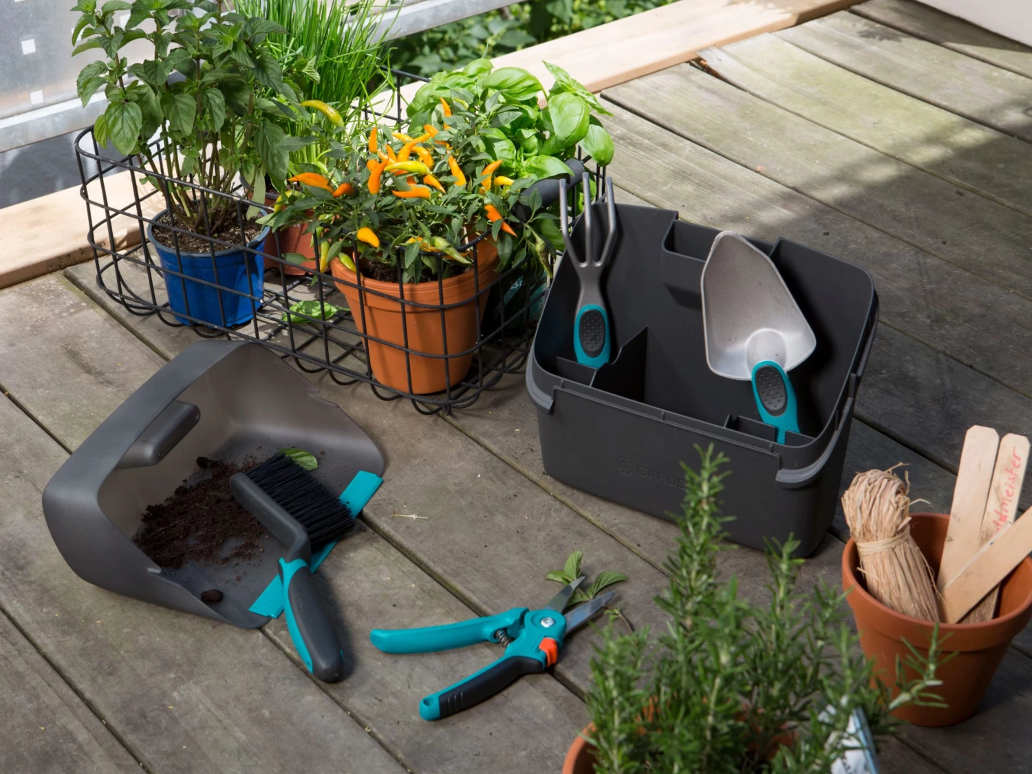 The set is a handy holder of everything you need for caring for and landscaping balcony and terrace gardens.