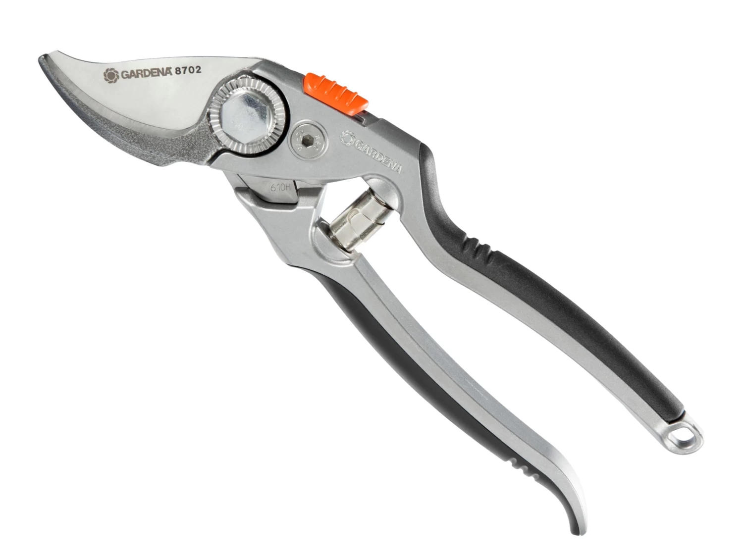 The Gardena Aluminium Garden Secateurs B+/L with its stainless steel upper blade and forged bottom blade; both replaceable, are perfect for cutting flowers, young shoots and fresh wood (up to 2.2cm).