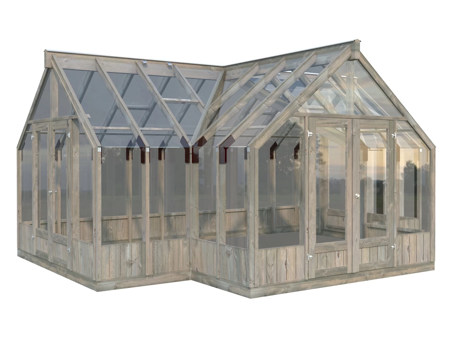 The glasshouse’s grey-wash Nordic Spruce frame comes pressure-treated for longevity with impra®lit-KDS – a water-borne, chromium free wood preservative (copper-organics) for the prevention of attack by insects including termites, soft rot and fungal decay.