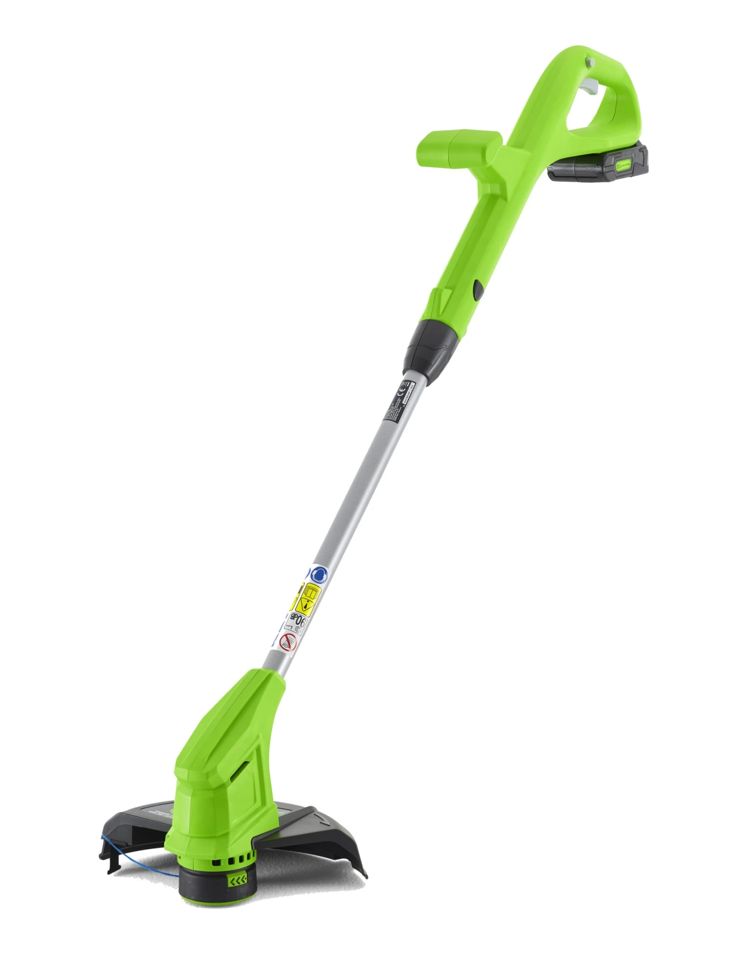 Have your backyard looking sweet in no time with the The Greenworks 24V line trimmer. This trimmer features a rotatable trimmer head which converts the product from a string trimmer to an edger and has a guard to protect the operator from debris.