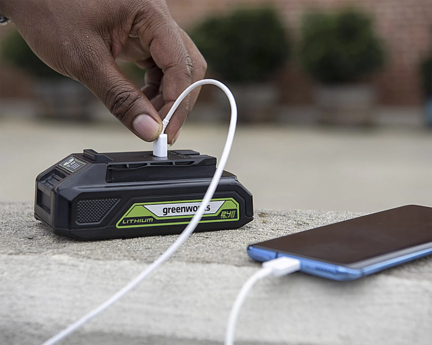 Paired with the Greenworks 24V 2.0Ah battery, plus a 24V Greenworks Battery Charger, you’ll get the job done in no time.