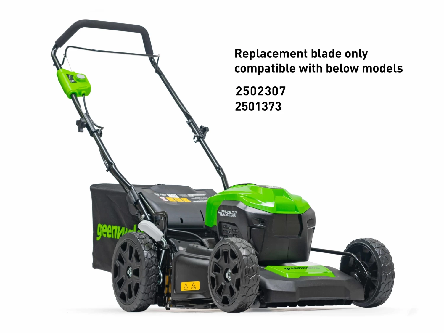 Replacement blade for GreenWorks Lawnmower G-MAX 40V Li-Ion 460mm Brushless Models labelled 2502307 or 2501373.
