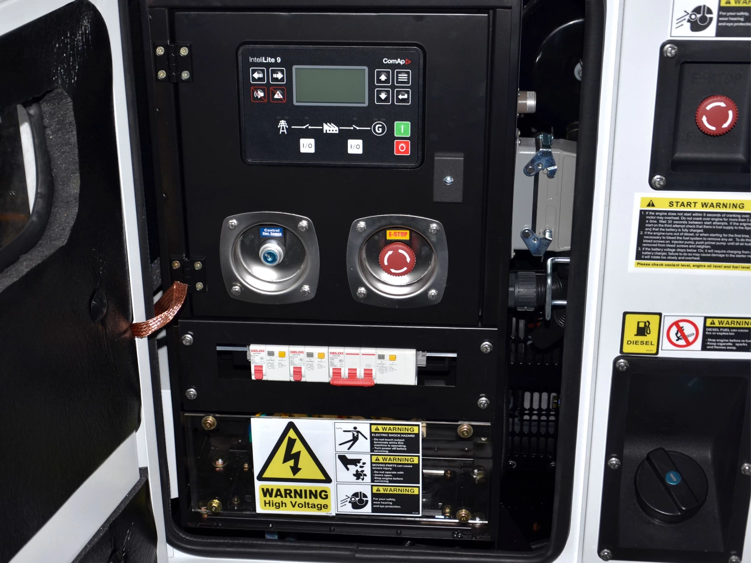 The low revving water-cooled 4-cylinder diesel engine provides easy, unstressed power and great fuel economy, while the AMF9 control panel with its intuitive interface gives you control over numerous variables including the voltage and current, as well as oil pressures and the engine running hours.