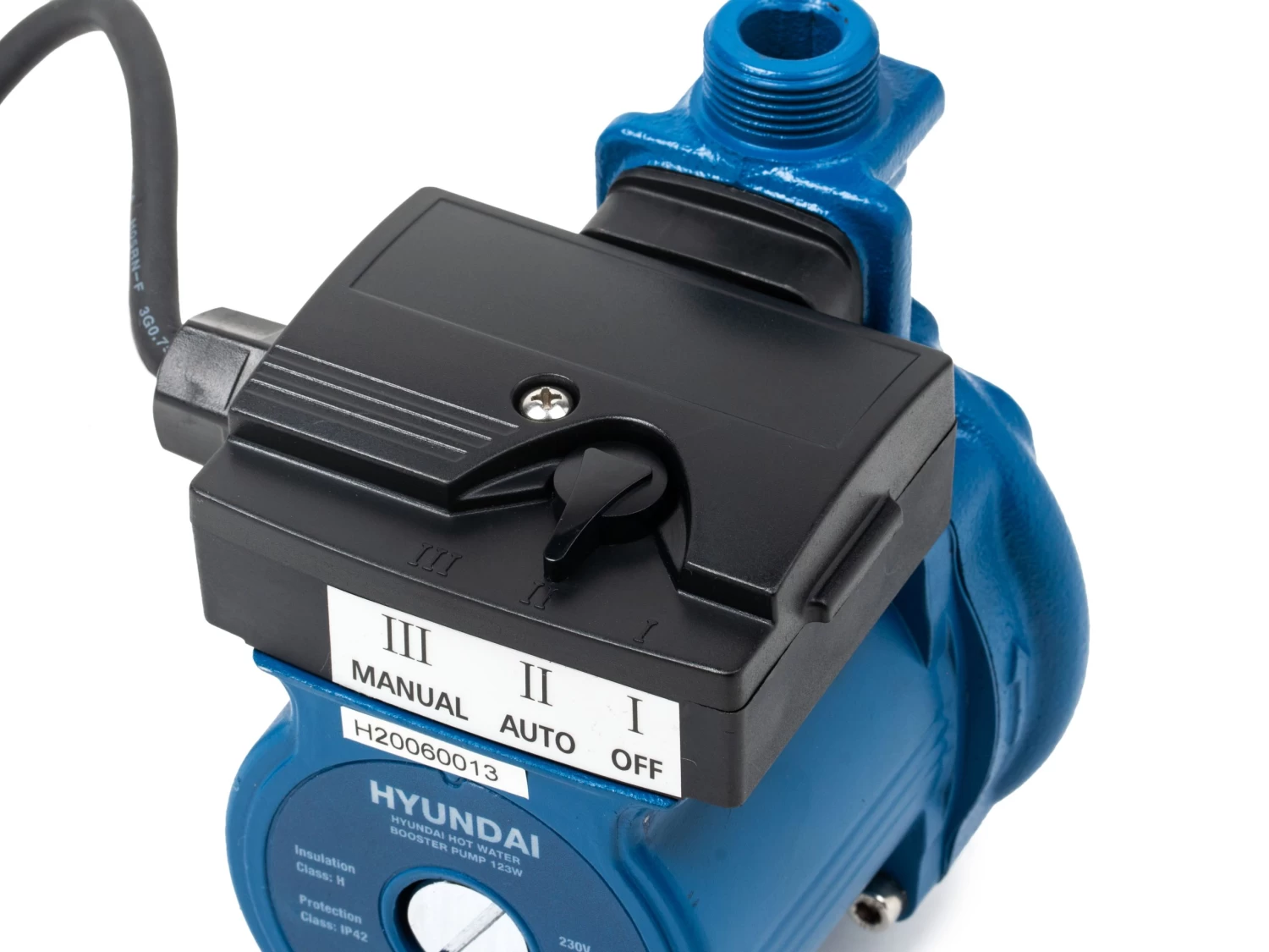 This integral flow switch design provides additional pressure to outlets where the required flow rate is up to 0.3 l/s. Operation is by three position switch, OFF, MANUAL and AUTO. In the AUTO mode the pump starts and stops using the integral flow switch (activated by a gravity flow of 2 l/min). The gravity flow at all fittings should be checked to ensure that the pump will operate when the outlet fitting is opened. When the MANUAL mode is selected the pump will run continuously.