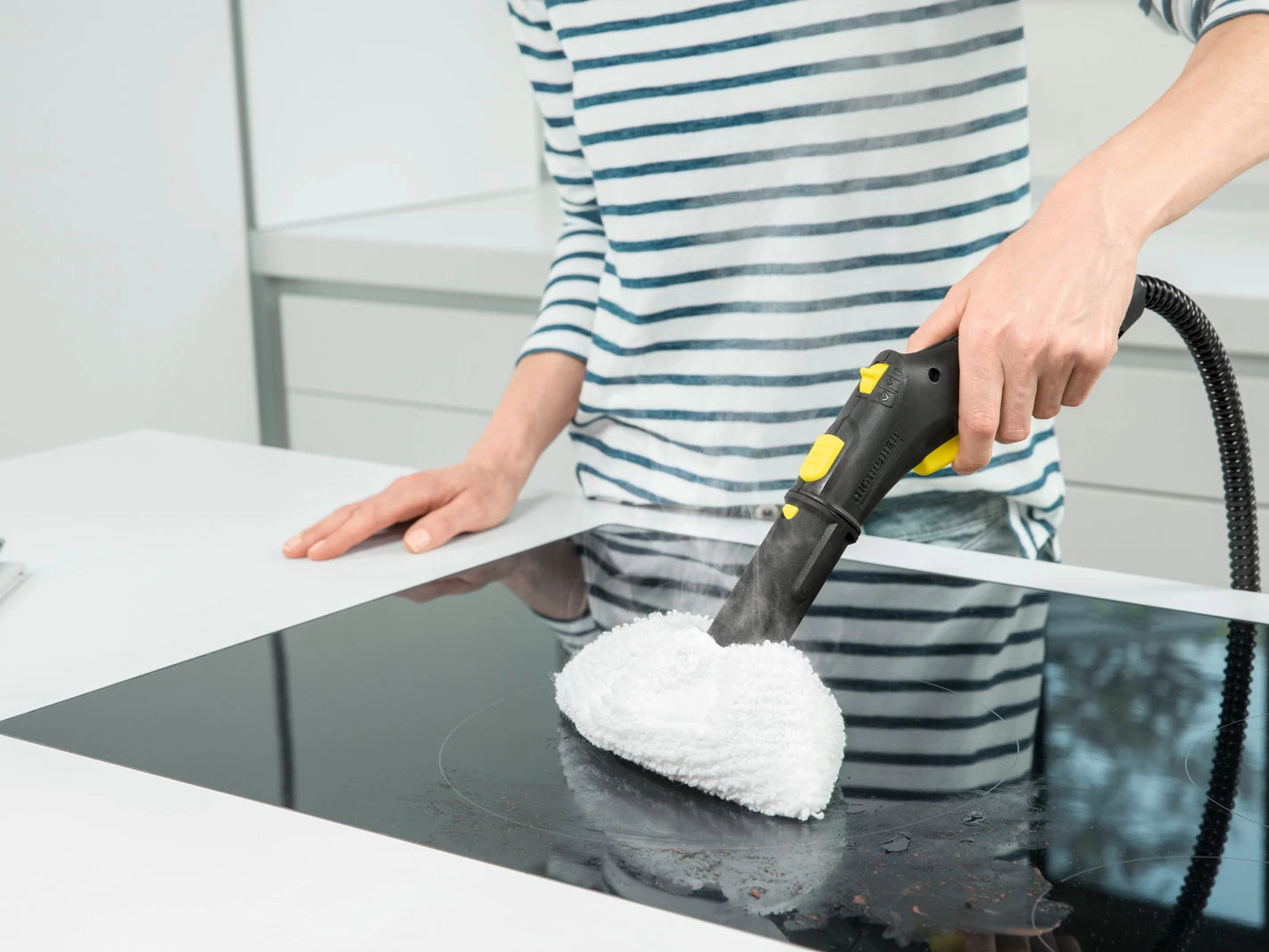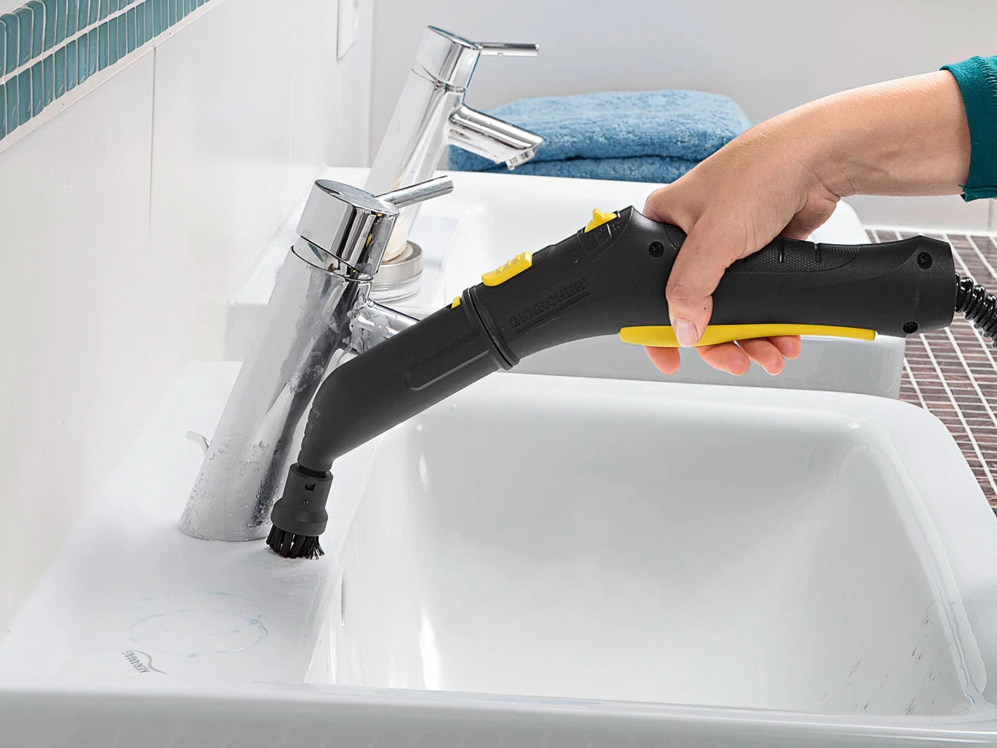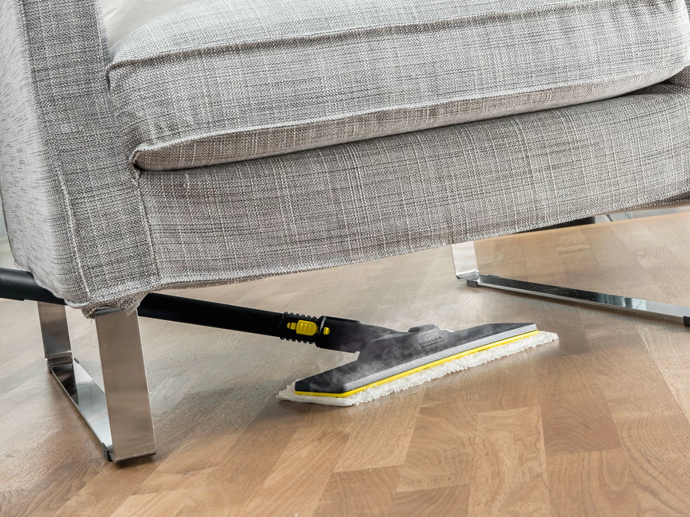 * Tests have shown that with spot cleaning of 30 secs at max. steam level with the Kärcher steam cleaner 99.999% of enveloped viruses such as coronavirus or influenza (excluding the Hepatitis-B virus) can be removed on common smooth household hard surface