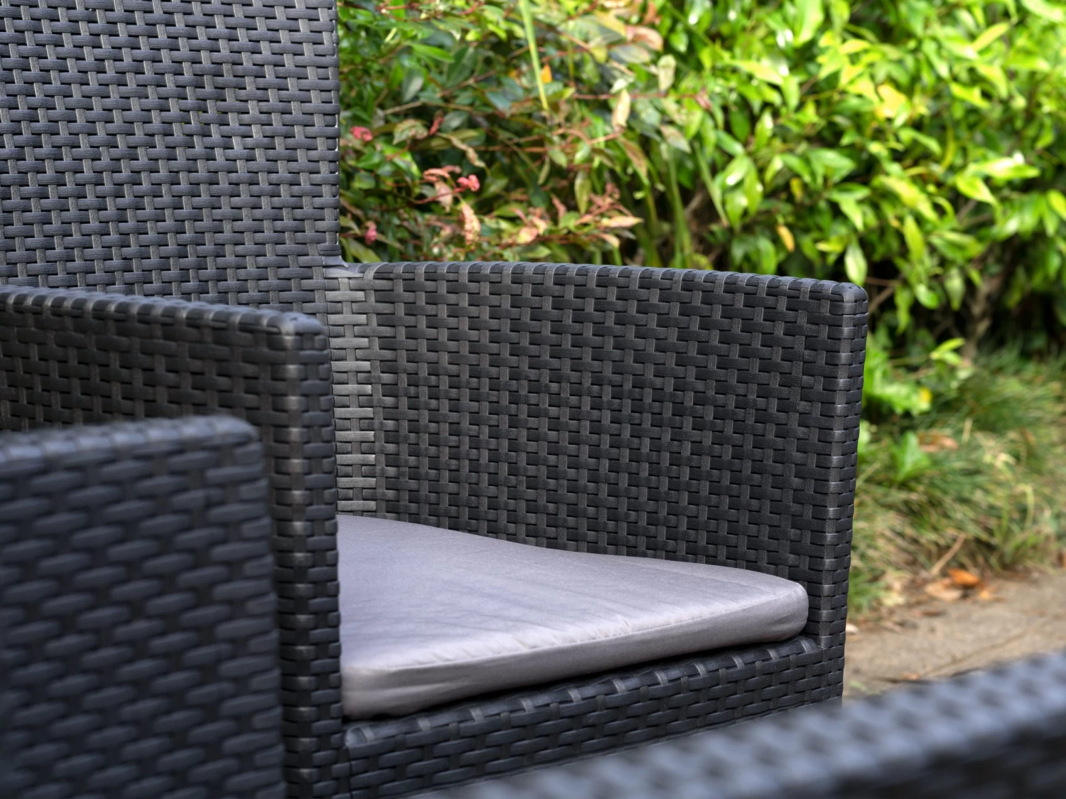 The two high backed chairs are super comfy and come with washable outdoor cushions, while the included side table is the perfect size for drinks, sunnies and iPads.