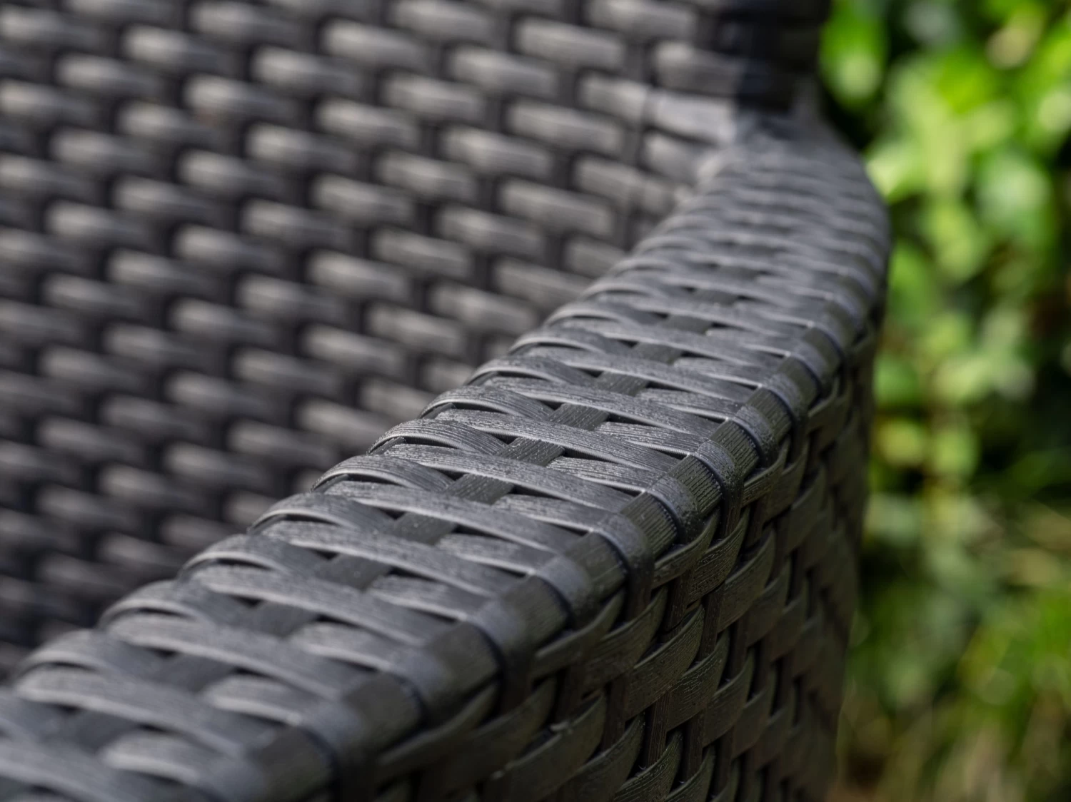 Designed in Europe, the wood look rattan finish gives a natural feel while the straight corners and round armrests keep the look modern and elegant.