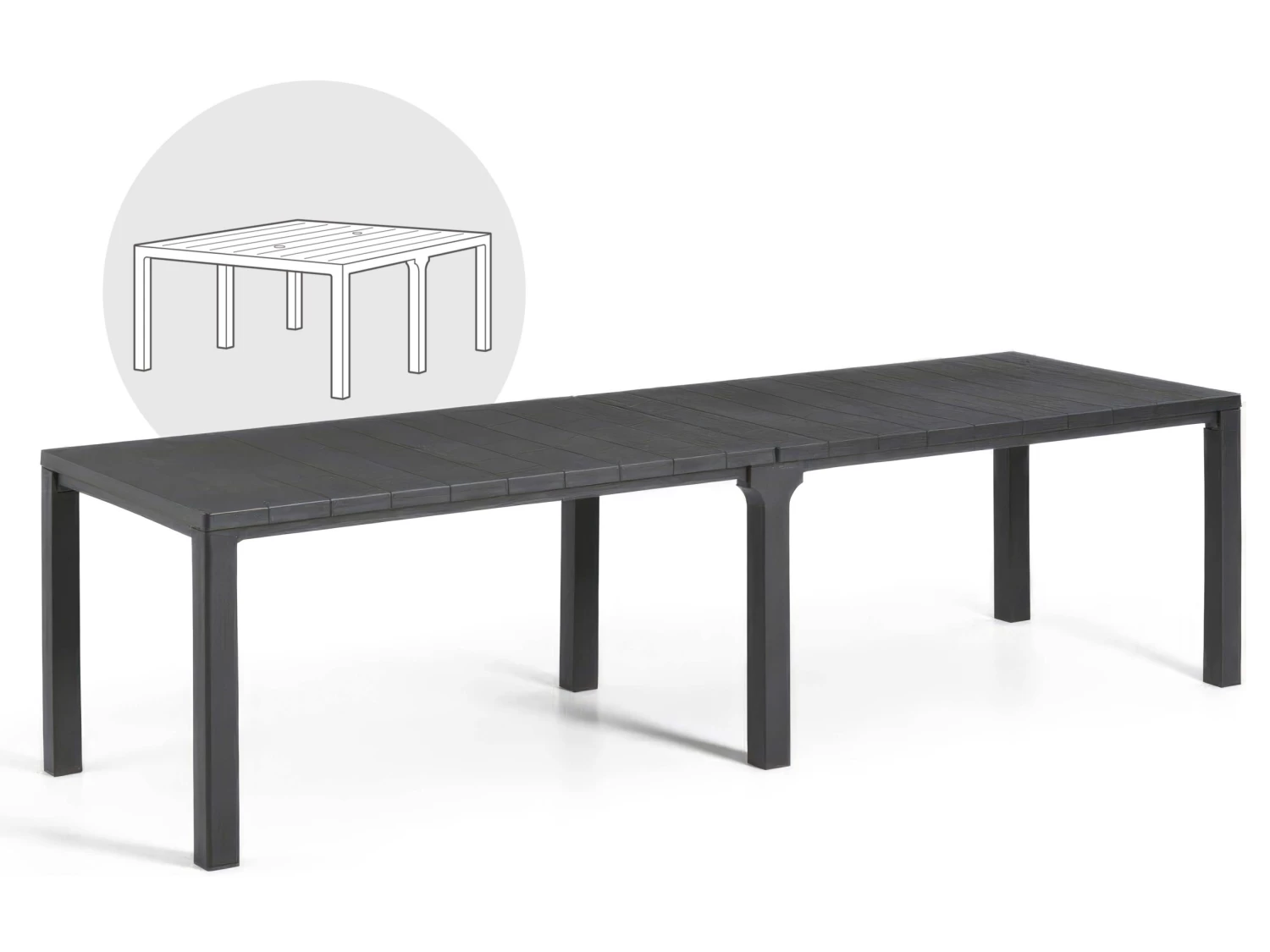 With a sleek, deep graphite finish, the colour of this table won’t fade over time thanks to a durable, low-maintenance UV stabilised resin construction. So easy to keep clean, just go over it with a damp cloth!