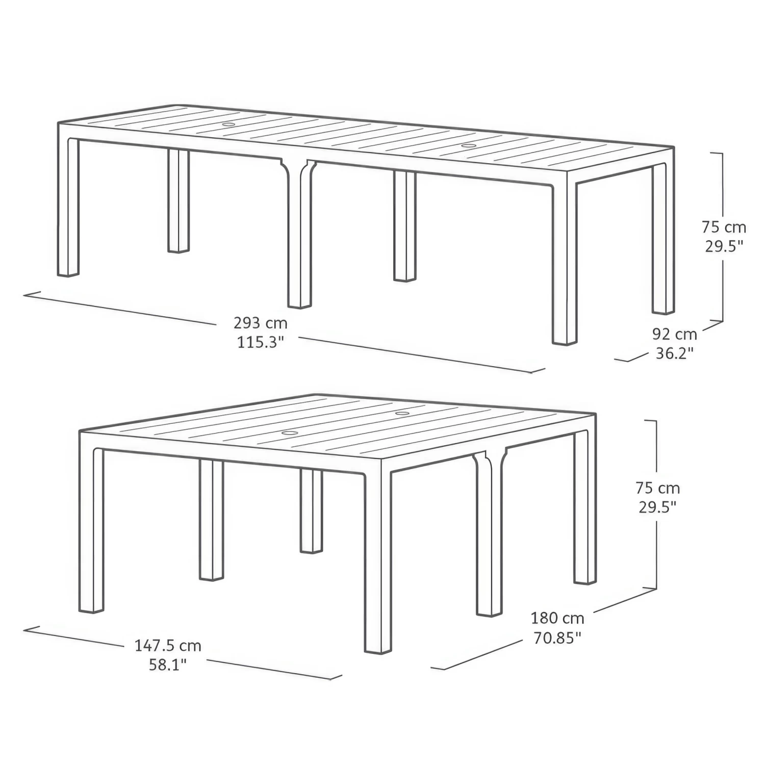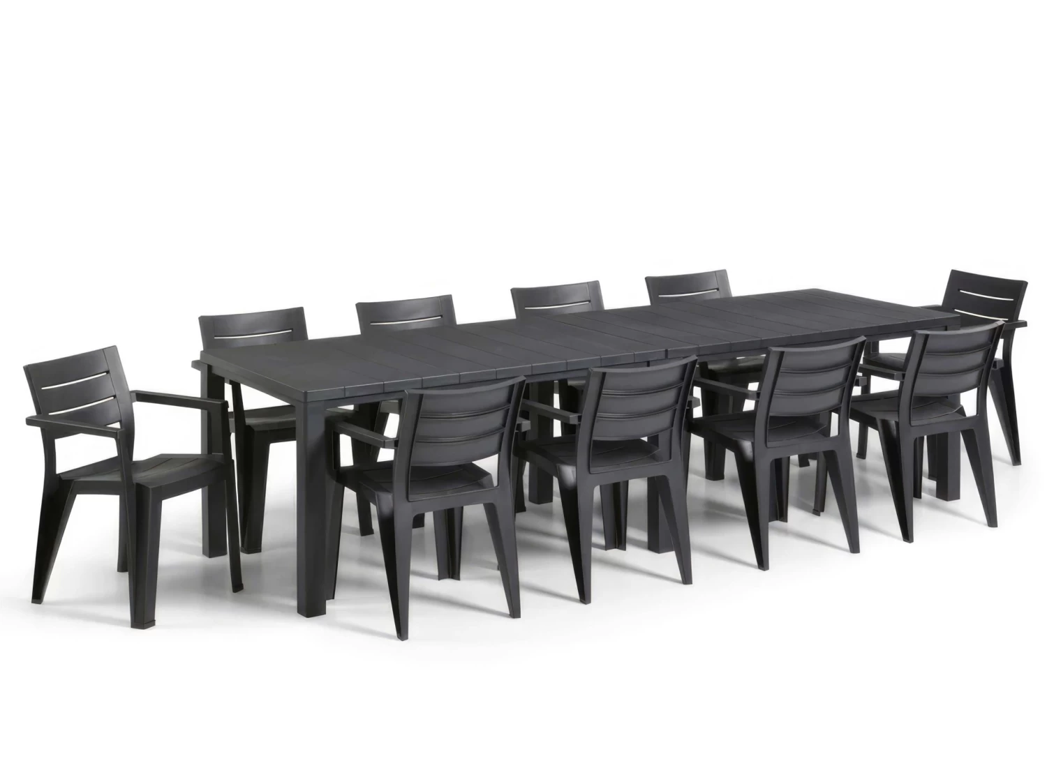 The perfect size to seat a large family or group of friends around to dine al fresco during the summer, this table comfortably seats up to 10 people in the long, banquet formation (joining short edges) or 12 people in the square formation (joining long edges).