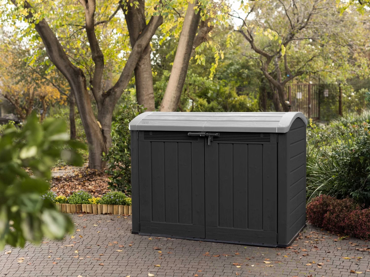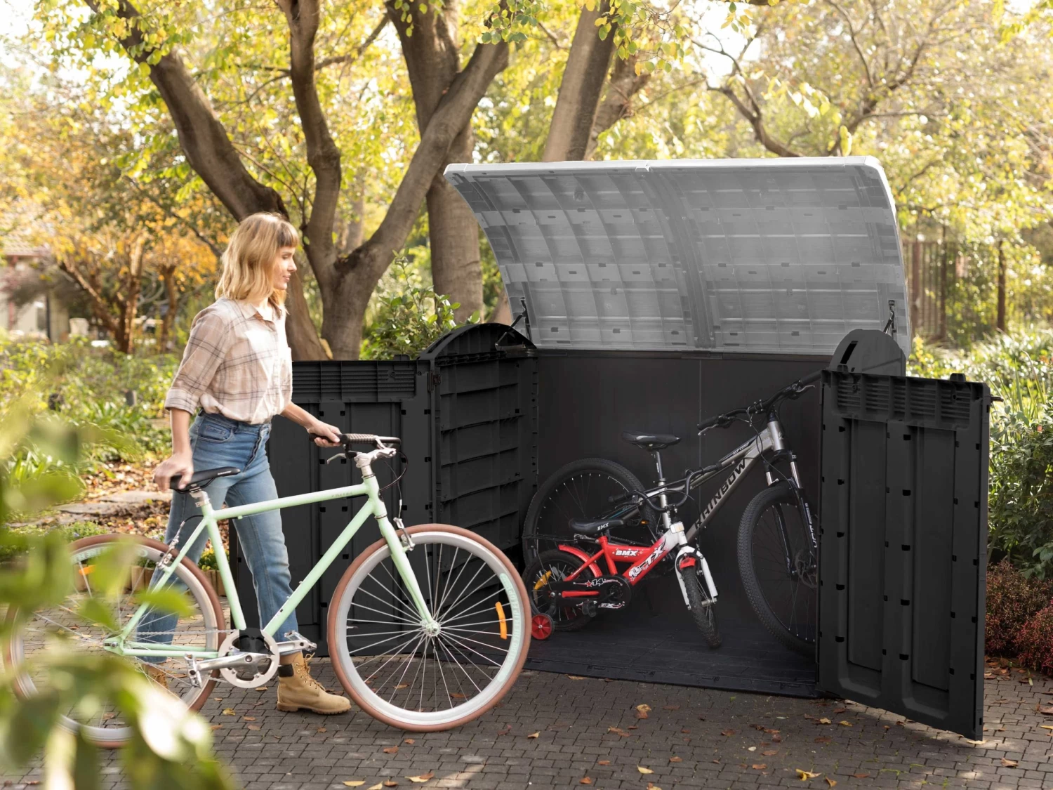 Ready to store a range of items, from two 360L rubbish bins to BBQs, furniture, bikes, and even pool pumps, with its generous 2000L capacity.