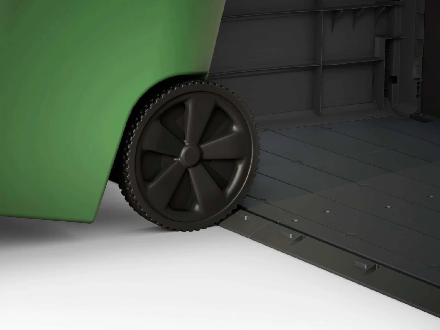 This large outdoor storage box is built to last, with a reliable weather-resistant construction that keeps your items ventilated and dry, and a sloping threshold for rolling items in or out easily.