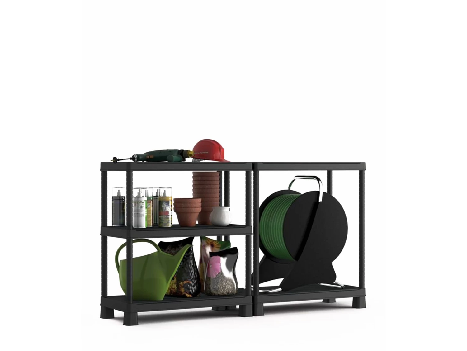 Assembled in 10 minutes with no tools required, this clever plastic shelving will have chaotic spaces organised in no time. Each of the 5 shelves has a tough 55kg load capacity for storing a wide range of gear, plus the units can be attached to the wall to keep things nice and stable.