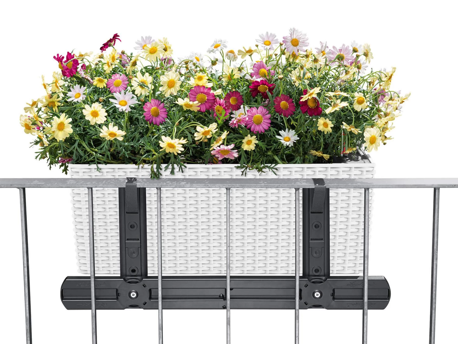 This Balconera Bracket Extension pairs with the Lechuza Balconera Bracket as a supplement for railings, ensuring compatibility regardless of spindle spacing.