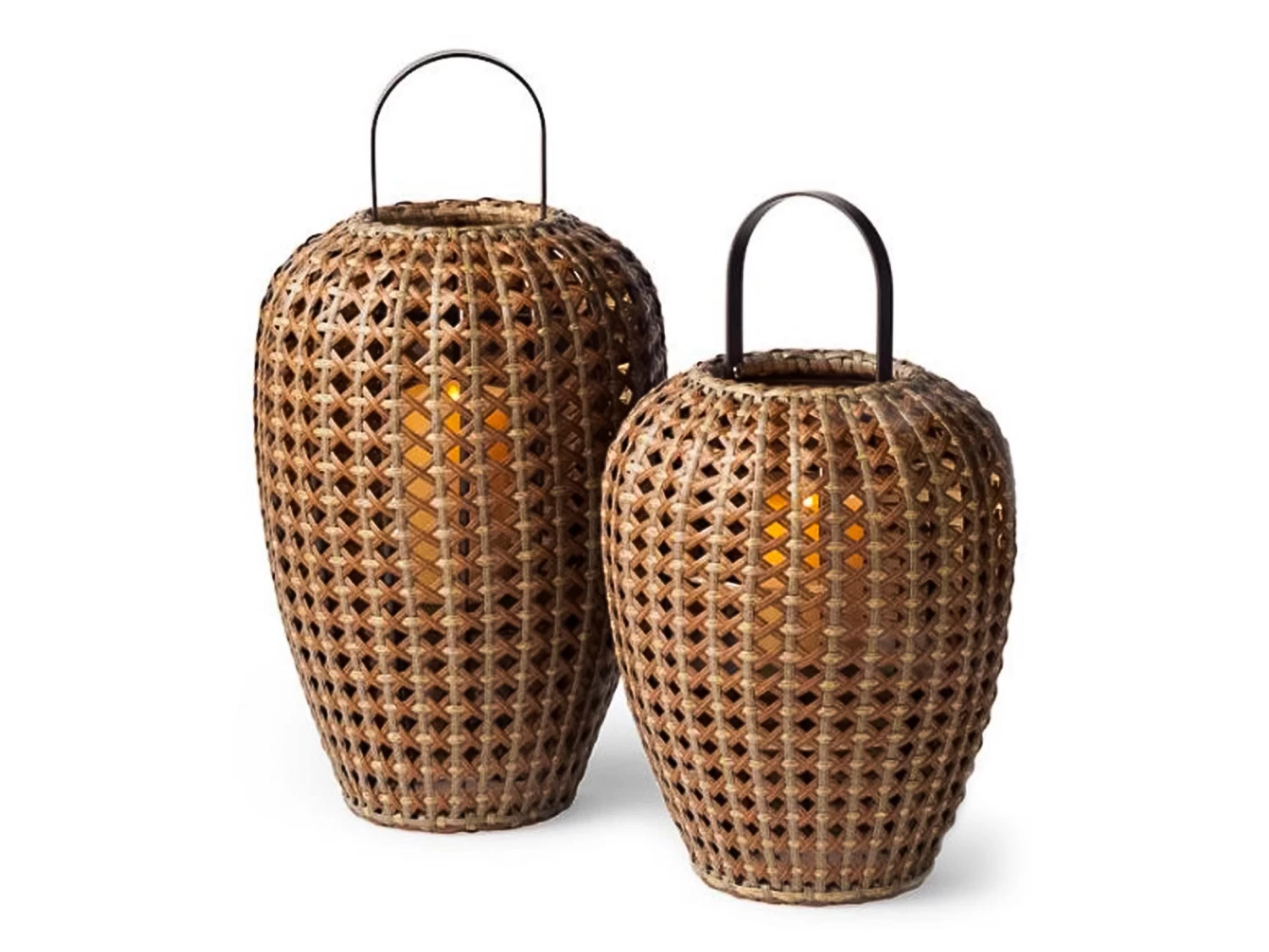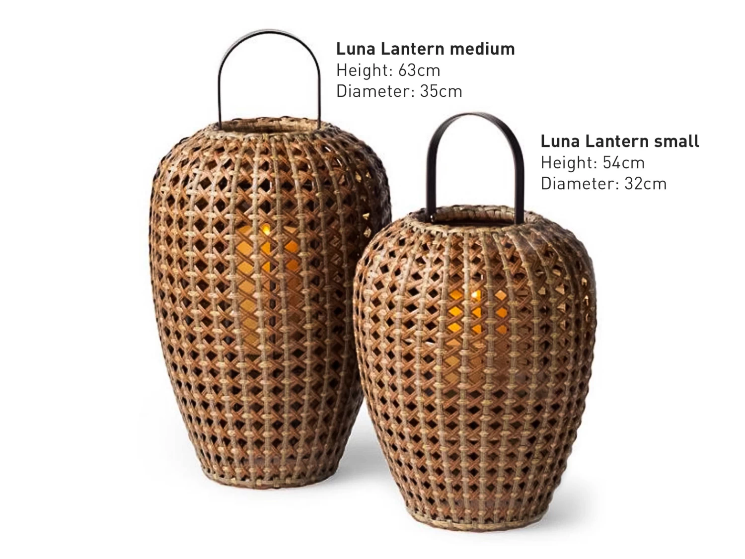 Evoke tropical, coastal vibes with the rattan style Small Luna Outdoor Lantern that will look great out on the patio, or even as an indoor decorative piece.