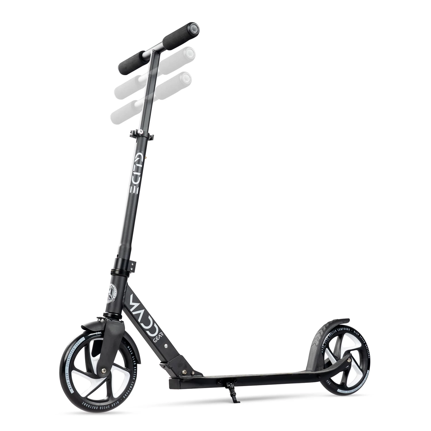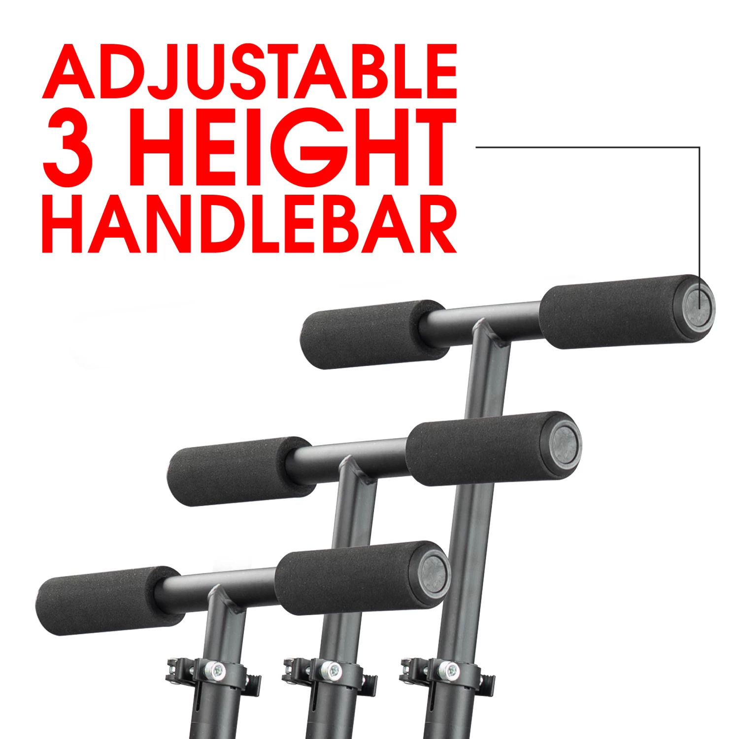 • 14″ Wide 3-Stage Height-Adjustable Handlebar with Comfort Foam Grips (tallest height from handlebar to deck is 83cm)