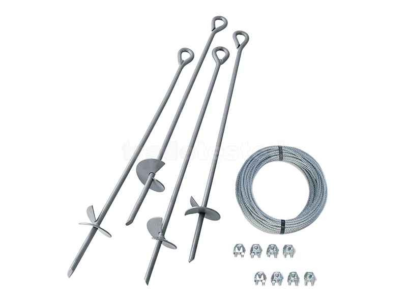 – Includes 4 x 300mm steel earth anchors, 15m cable and 8 x clamps