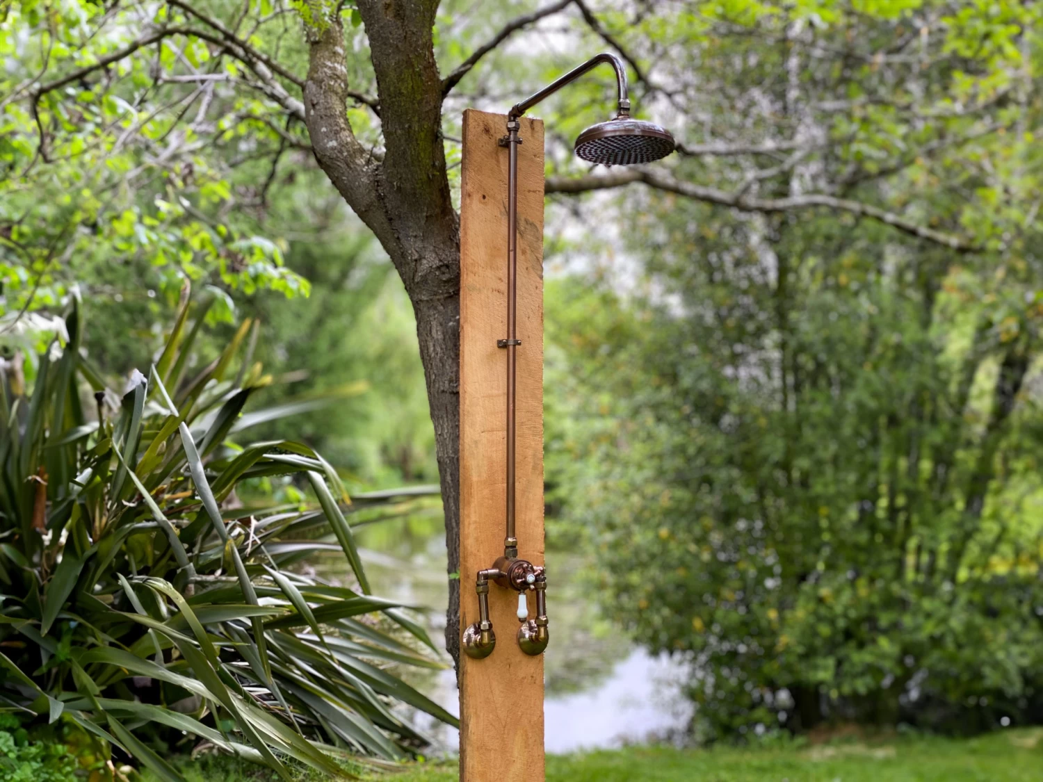 The Neptune Classic Outdoor Shower with mixer, hand crafted in Canterbury, New Zealand, combines the elegance of exposed plumbing with the luxury of a rainmaker shower experience. Its versatile mounting options and child-safe mixers make it the perfect choice for a modern outdoor bathroom.