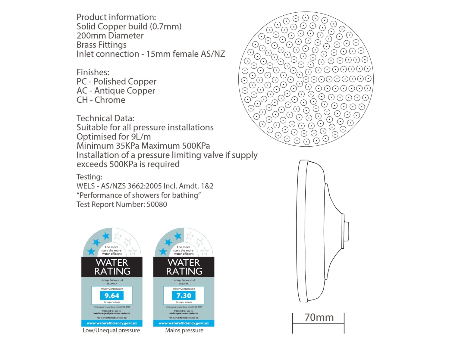 The Neptune Classic is hand-crafted & supplied with a Copper Rainmaker shower rose, hand-spun in Canterbury, New Zealand.
