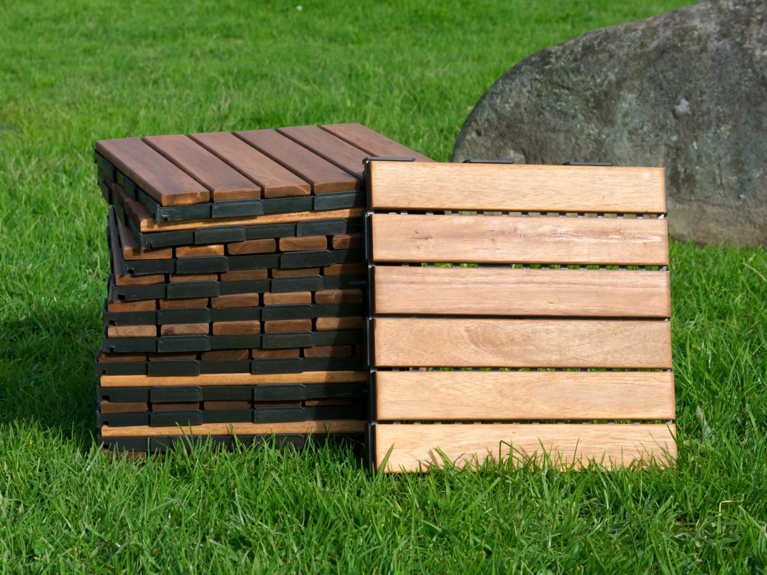 These stylish, versatile wooden outdoor and garden tiles are great for patios, walkways, hot tub surrounds, porches and entrance ways. They can be used on any hard surface, or as temporary flooring on grass or soil, and can be exposed to all weather conditions. Sold as a set of 12 wooden tiles which easily clip together without any tools.