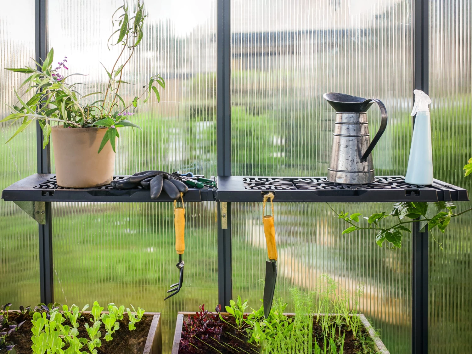 Constructed with easy-to-clean PVC plastic, each shelf is capable of supporting up to 20kg and comes with brackets and fasteners needed to mount onto your greenhouse wall.