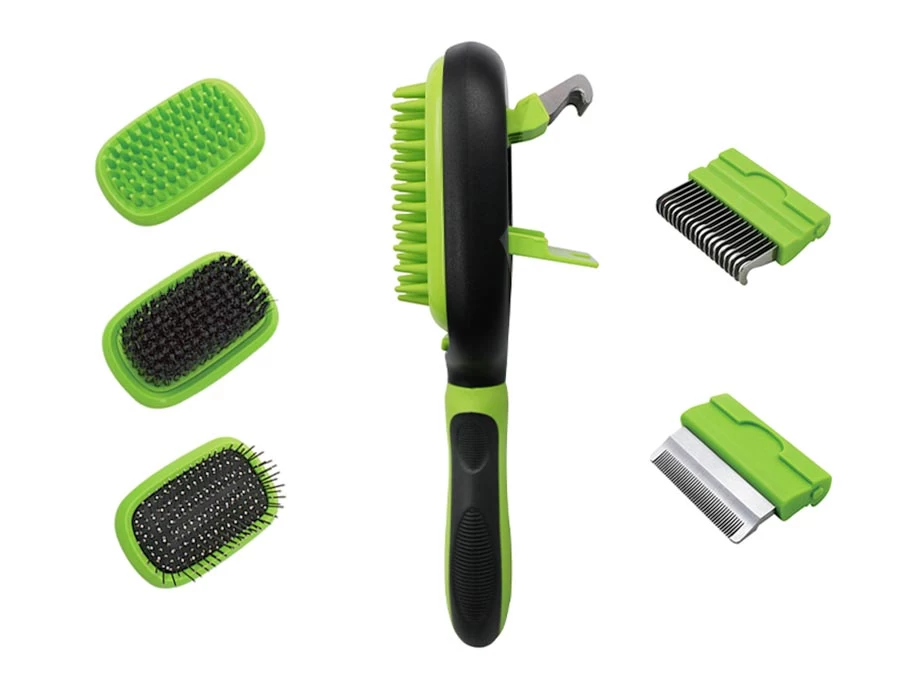 • 5 piece set – bristle brush, pin brush, massage brush, de-matting comb, and de-shedding comb