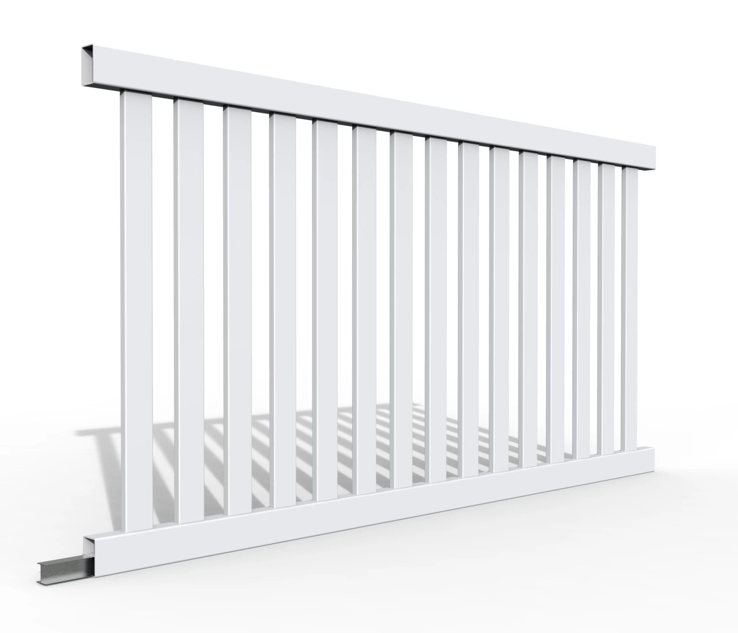 Panel Kit includes: 2 x Rails (top & bottom), 15 x ‘Pickets’, 1x Bottom Rail Alloy Insert. This creates a single 2.4m x 1.2m fence section.