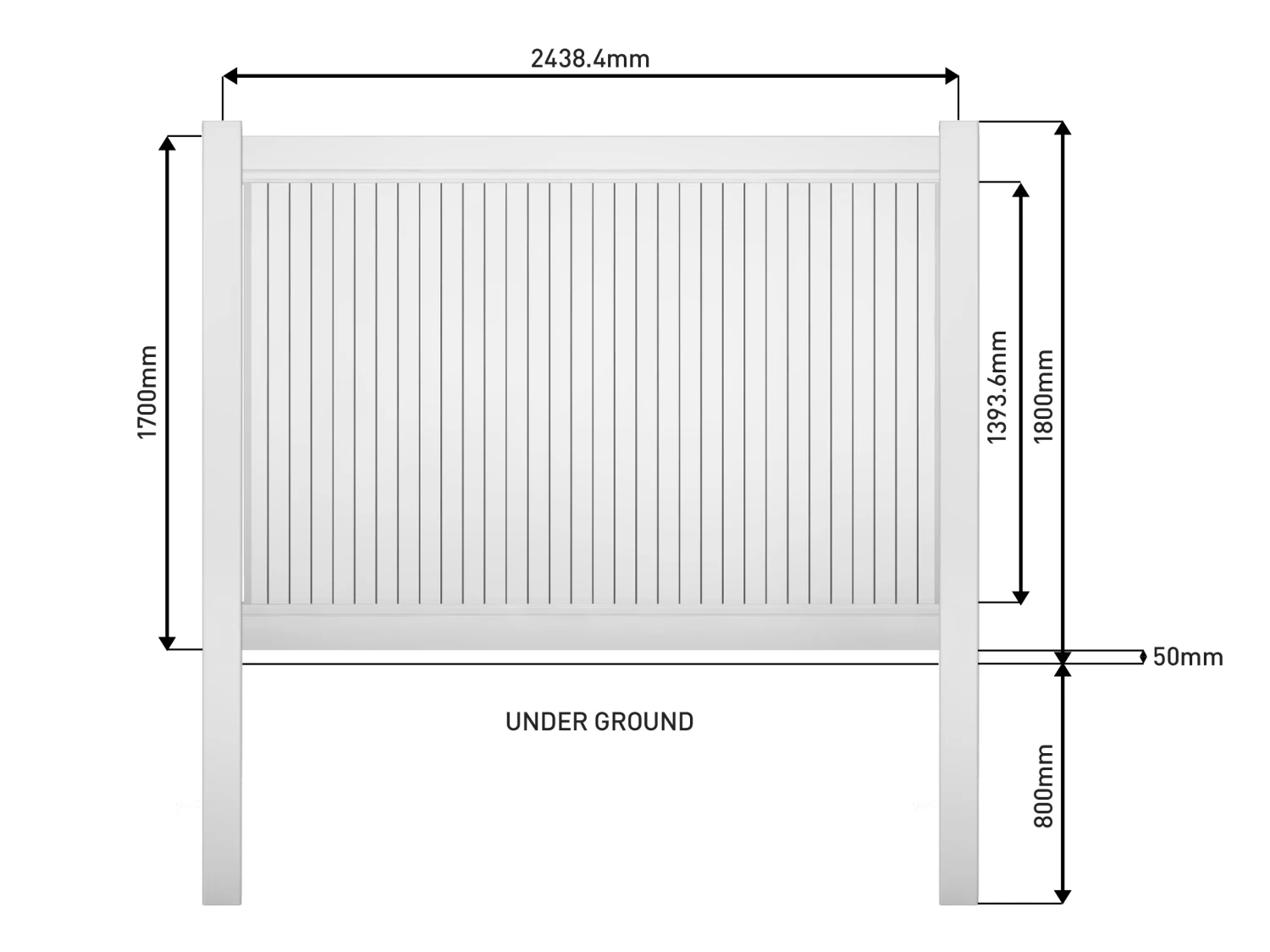 Panel Kit includes: 2 x rails, 8 x tongue & groove wall panels, 2 x U channels, 1x bottom rail alloy insert. This creates a single 1.7m x 2.4m fence panel (finished height 1.8m including posts, available separately). Please note this kit does not come with end posts.