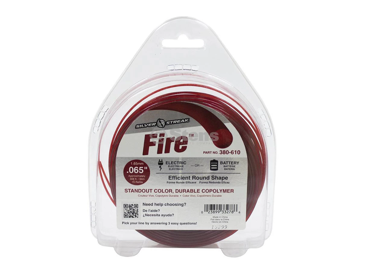Preferred by professional landscapers and homeowners alike, this 93.9m / 1.65mm Stens Silver Streak Fire Trimmer Line has a round shape, third degree cut, and is constructed from durable copolymer.