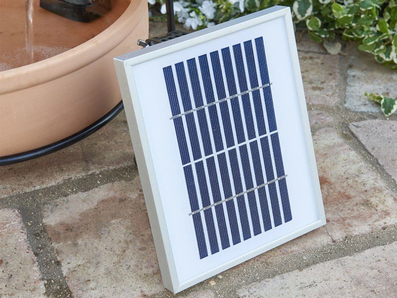 The solar panel comes complete with an integrated battery backup system – the pump will run for 3 hours every day, then turns itself off until the next day at the same time. If you wish to restart it sooner than this, just press on and off and the water feature will reset itself. No more worrying about power cost, plugs and wires.